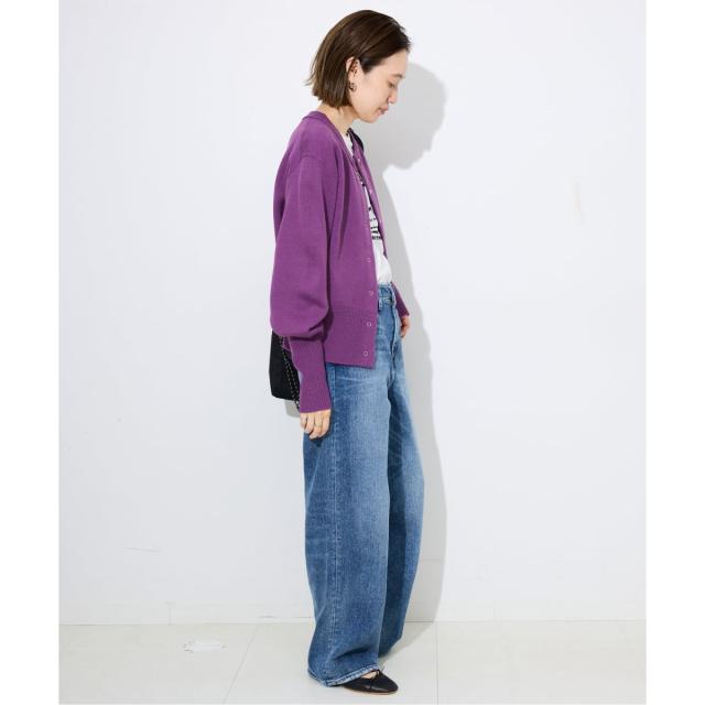 カーディガンのシルエットがポイントに、