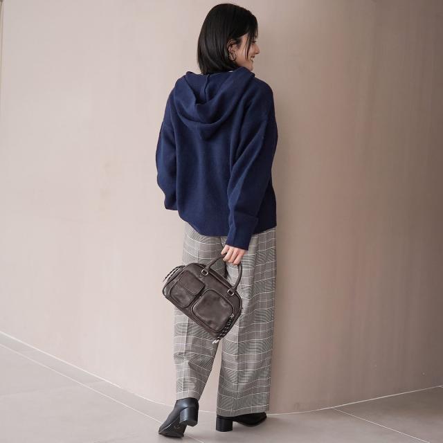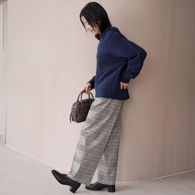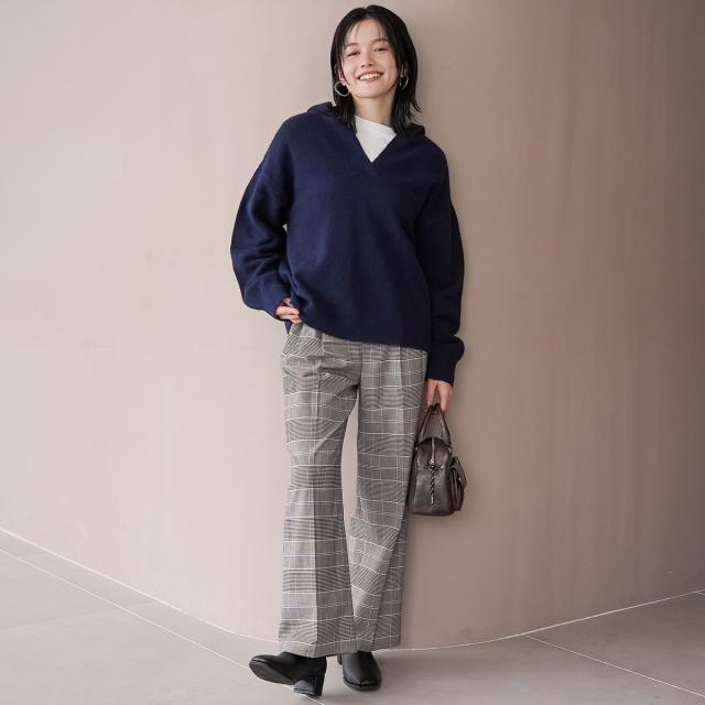 セットアップ風にニットボトムと合わせると、統一感のある大人カジュアルに仕上がります。