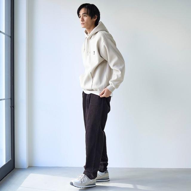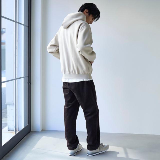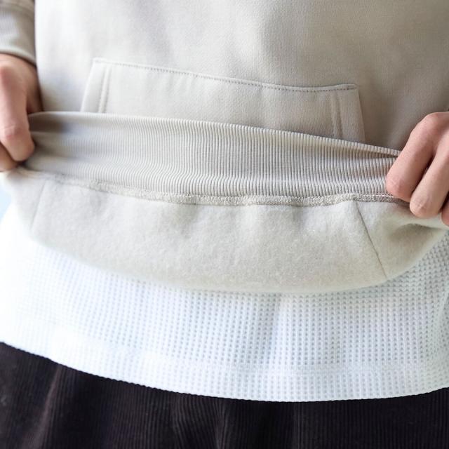 立体感のあるフードが加わることで、クルーネックよりもカジュアルな雰囲気でお楽しみいただけます。