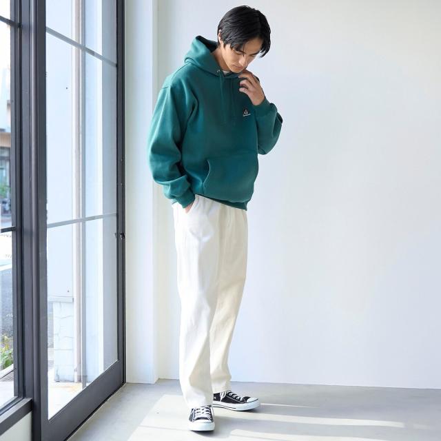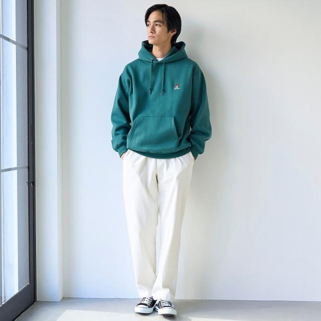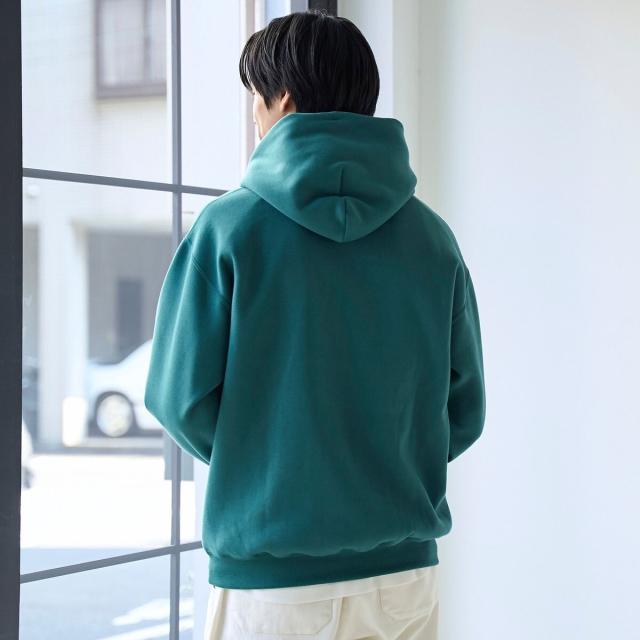 裏起毛で暖かく、シンプル派にもおすすめ。さりげない遊び心をプラスしたスウェットパーカー