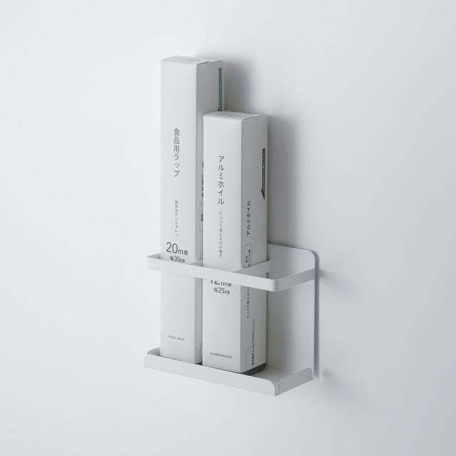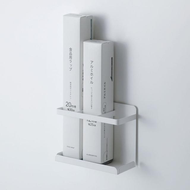 マグネット キッチン棚 マグネフィット ラップ ホイルラック ( ラック ラップスタンド ラップホルダー 仕切り付き 磁石 トレー ボトルラック ホイル クッキングシート スパイス 収納 キッチン収納 落下防止 白 )