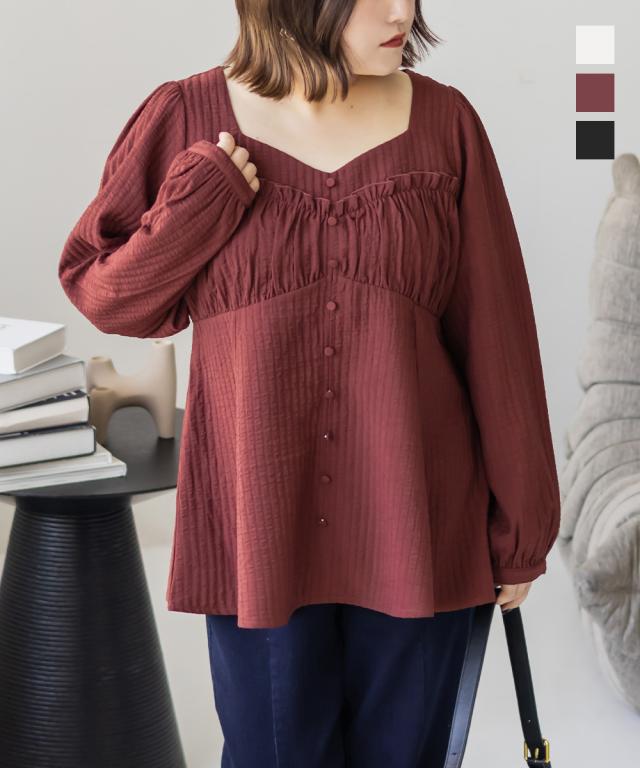 大きいサイズ/レディース/LL/3L/4L/CLETTEオリジナルコルセット風切替フレアブラウス