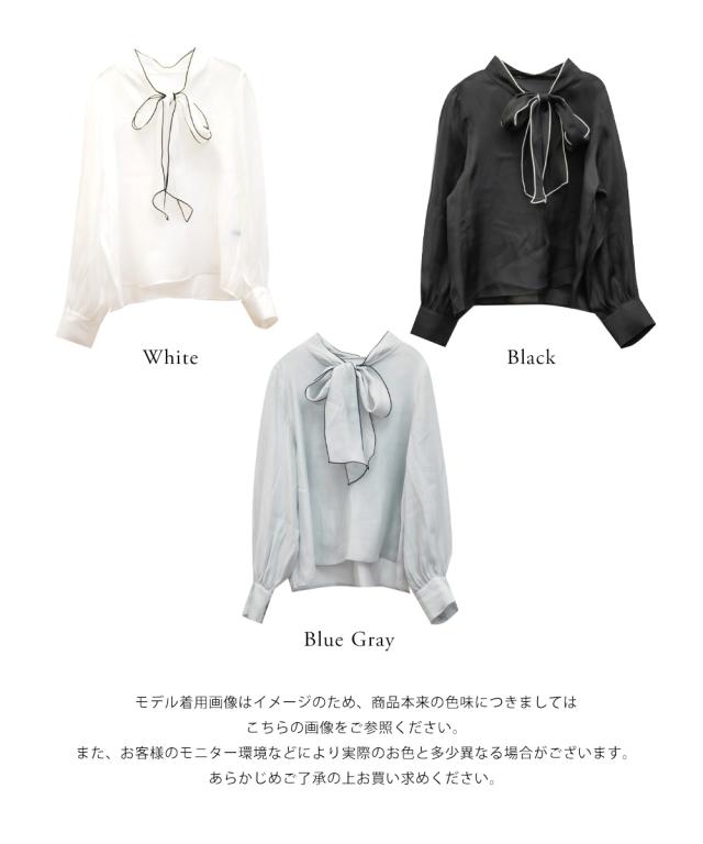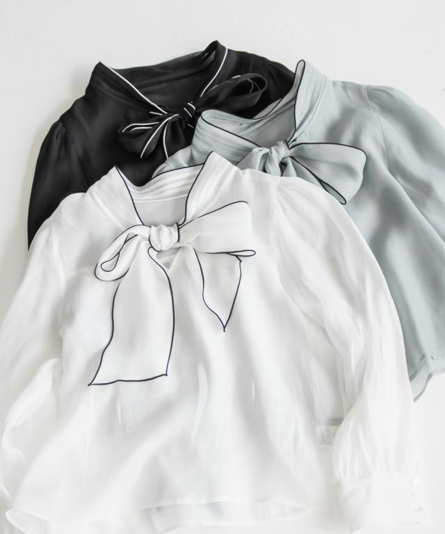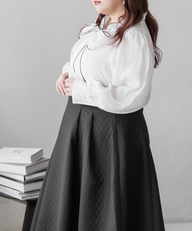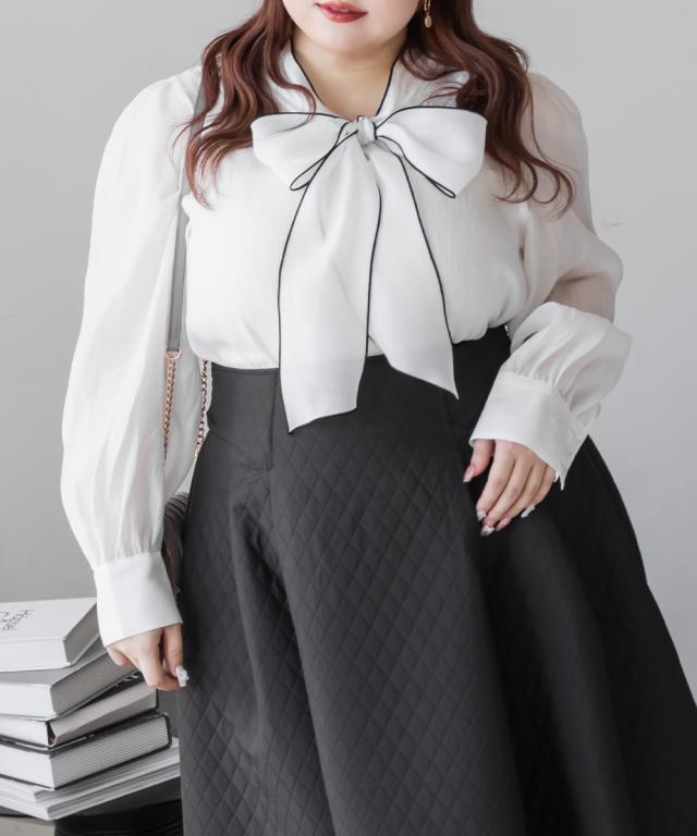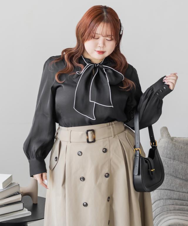 大きいサイズ/レディース/LL/3L/4L/CLETTEオリジナル配色リボンタイシアーブラウス