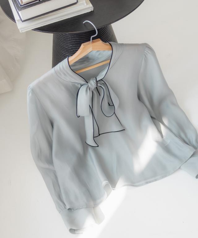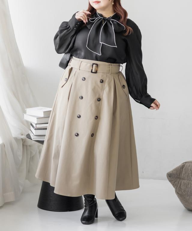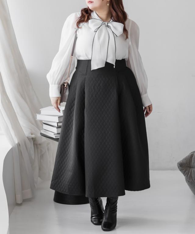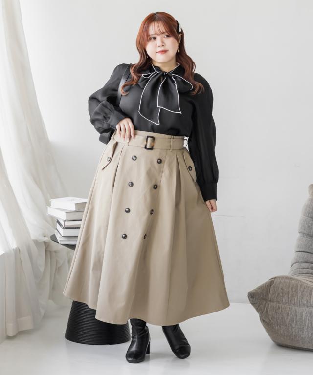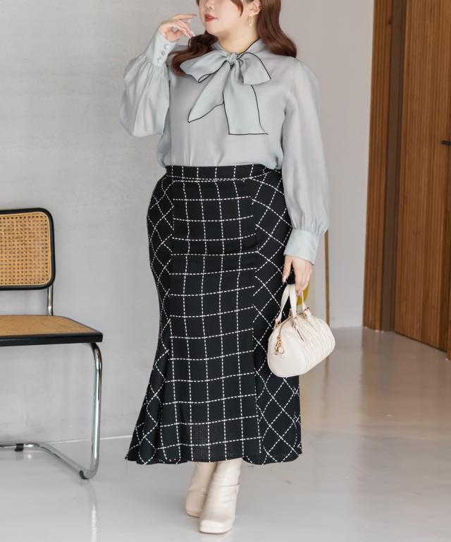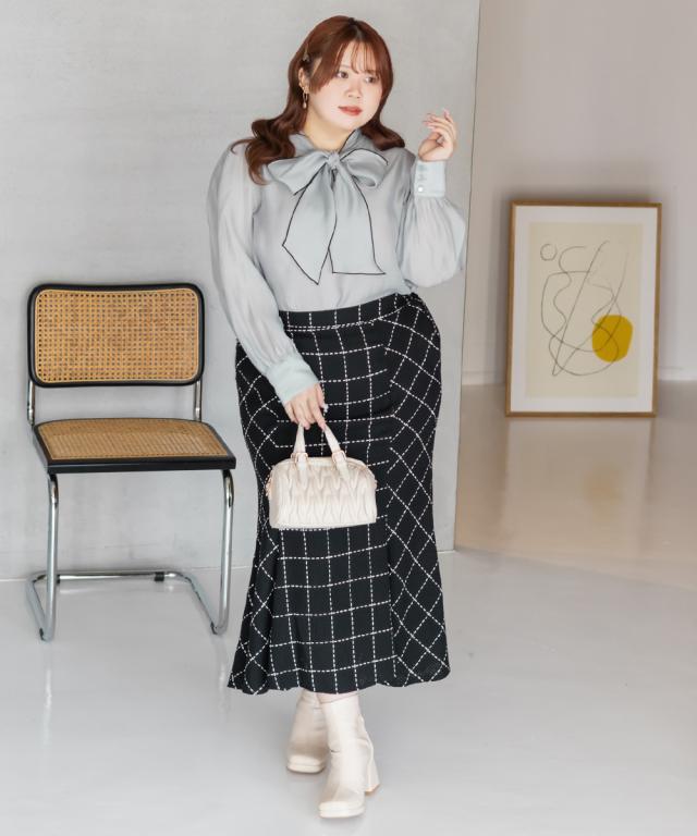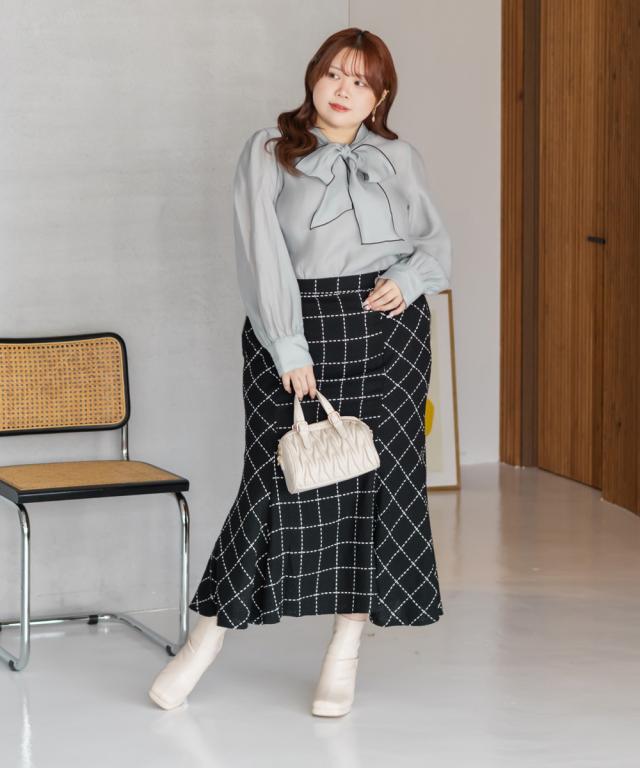 | 3Lサイズを着て丁度良く、いつも通りの着心地でした。軽くてエアリーな素材感でらくちんです。シーズンも長く使えるのであると重宝しそうです♪リボンタイデザインで自分で結べるのと、首回りは綺麗に開いているので窮屈感も無く着られます◎リボンは大きめで存在感があり顔回りが華やかなのと小顔見えもできます!配色のラインがポイントになっていてのぺっとしずに、メリハリをプラスしてくれるのもポイント!オンオフ使いやすいデザインで、色々なスタイリングが楽しめる優秀ブラウスです! |