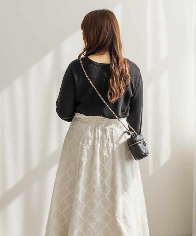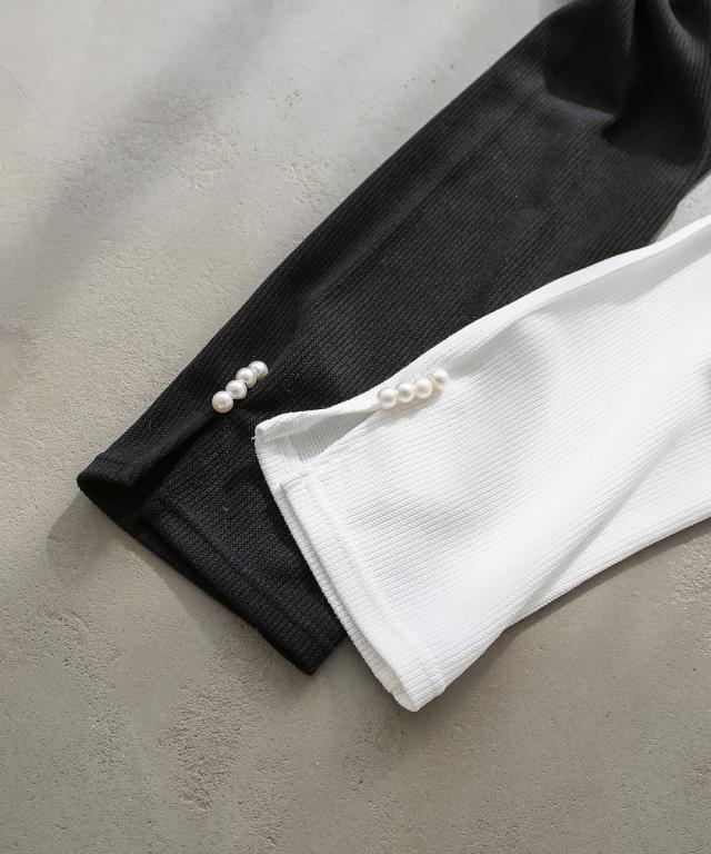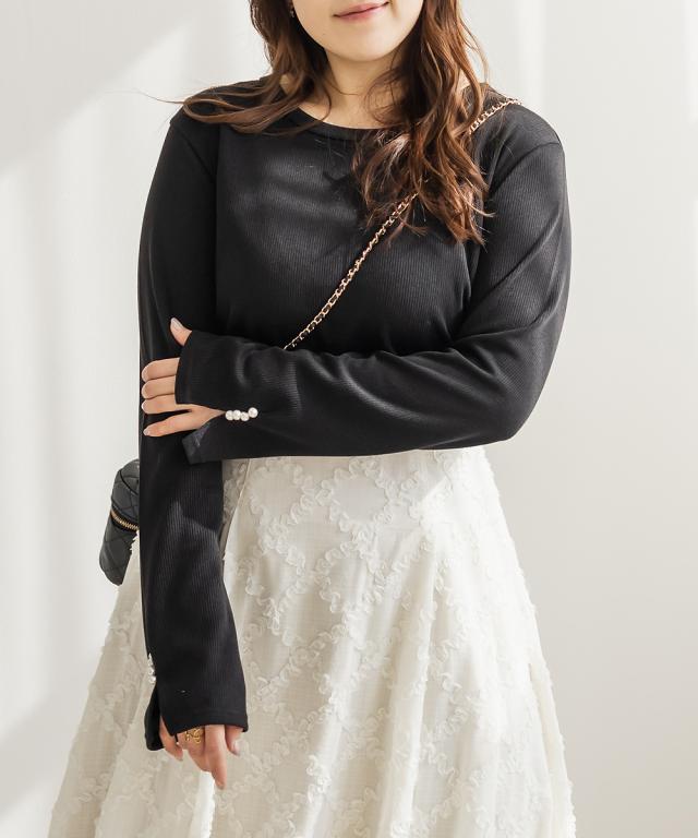 | 3Lサイズを着用しました。着用感はちょうどいいです。リブ素材の程よいフィット感が身体のラインをきれいに見せつつ、伸縮性があるので動きやすく快適です◎ 袖口にはパールがついていて、手元も可愛いです♪ネック周りはすっきり開いていて、1枚でも重ね着にも使いやすいシンプルな1枚です。厚みも少ないので、長い時期活躍し、アウターを重ねてももたつかないのが嬉しいポイントです。デニムやスカートなど、ボトムを選ばず着回しやすいので、持っておくとスタイリングに重宝します。 |