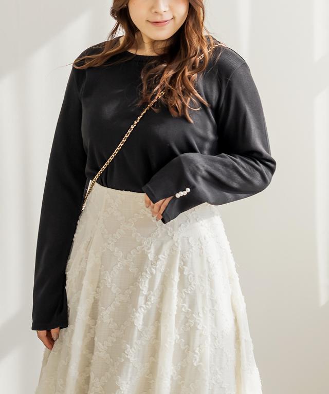 大きいサイズ/レディース/LL/3L/4L/CLETTEオリジナル袖口パールリブカットソー