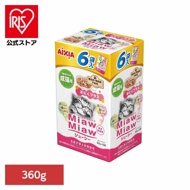 MiawMiawジューシー6P おにくプラス 360g 3001281 アイシア株式会社 猫 キャットフード ウェットフード ウェットタイプ パウチ 総合栄養食 DMHF a−iペプチド 着色料不使用 発色剤不使用
