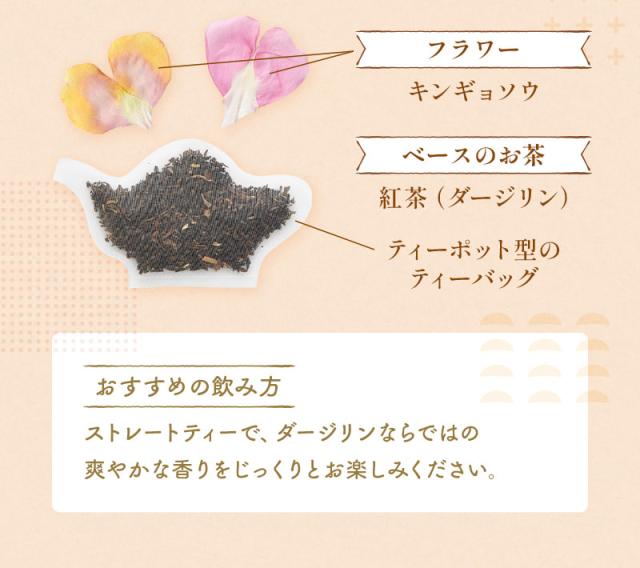 | 原材料 | ダージリン(インド)、食用花(キンギョソウ) |