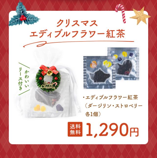 クリスマス ギフト プレゼント エディブルフラワー紅茶 ダージリン ストロベリー 2種各1個 ビオラ キンギョソウ 食用花 花 プレゼント プチギフト ティーライフ