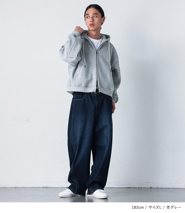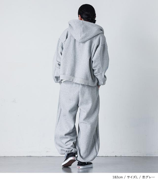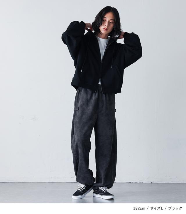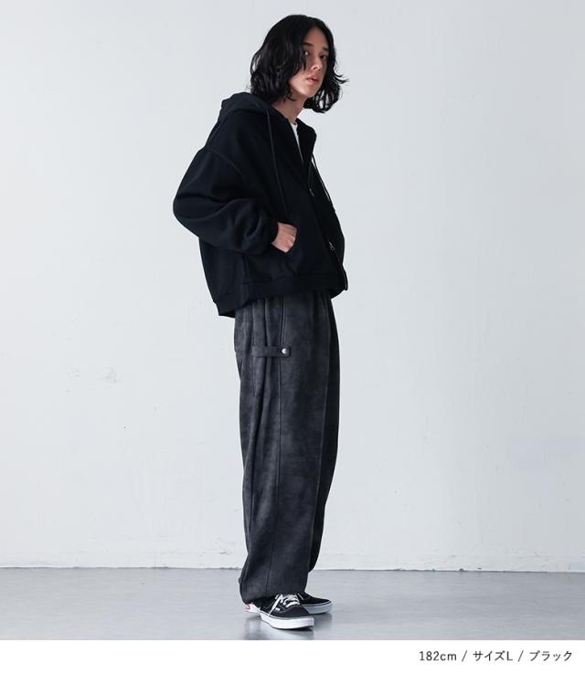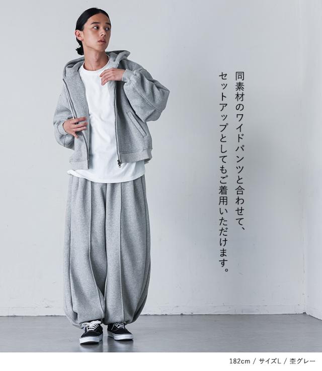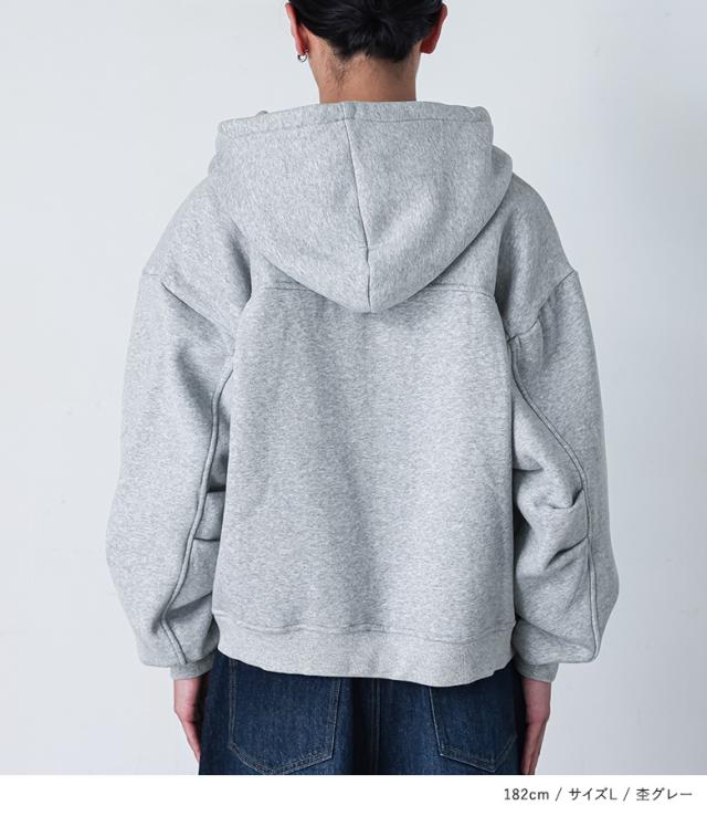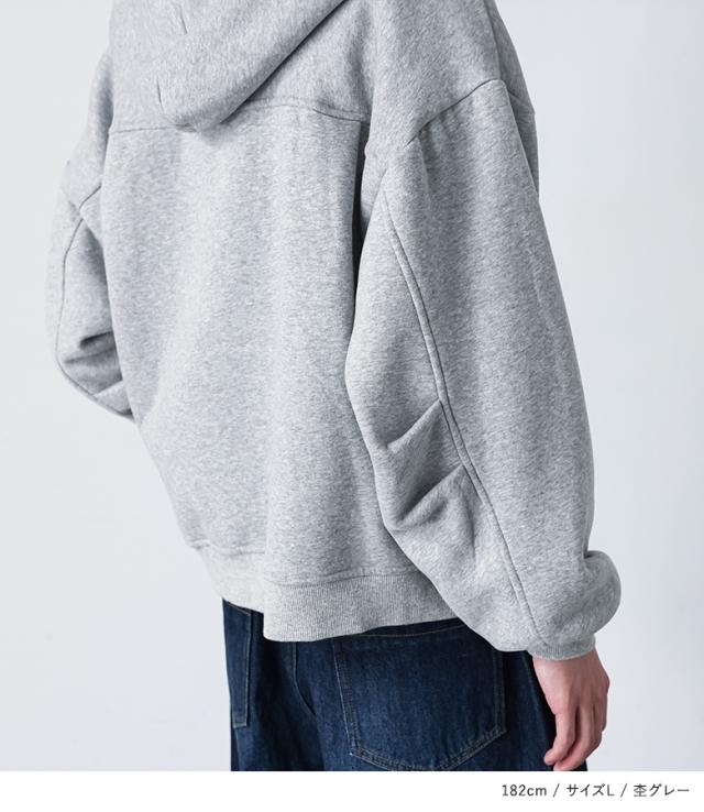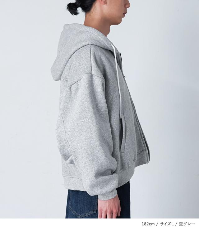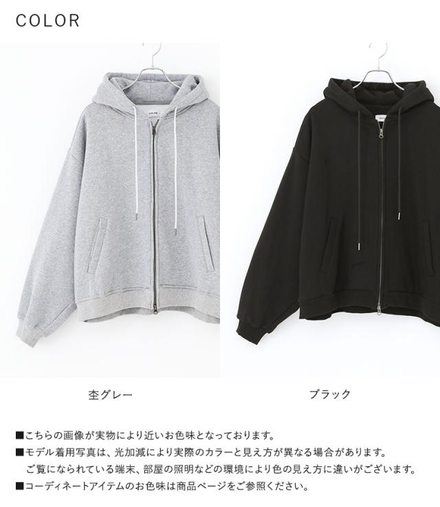 ■デザイン しっかりとした厚みのある裏起毛生地を使用したパーカー。ショート丈でコンパクトなトレンド感のあるシルエットです。後身頃のタックと後袖にタックが入った立体的なデザインで二重仕立てのフードでしっかりと立ち上がる仕様。ダブルジップの開け具合でインナーとのレイヤードも楽しめます。 ■コーディネート どんなボトムスとも相性がよく、羽織るだけでラフでこなれたスタイルが完成。着脱が容易なフルジップタイプで、ライトアウターとしても◎同素材のワイドパンツとセットアップで着用すると、コンパクトなトップスにワイドパンツを合わせたトレンド感のあるコーディネートが楽しめるアイテムです。 ■素材 厚みのある裏起毛生地を使用。ふんわりと柔らかな肌触りで、寒い季節に暖かくご着用いただけます。 ■製品についての注意書き 染色の特質上、発汗や摩擦により色落ちすることがありますのでご注意ください。 また、着用中の摩擦により色移りしやすい特性がありますので、白や淡色との組合わせはご遠慮ください。 他の製品に色が移ることがありますので、一緒に洗わず単独で洗ってください。 ご了承の上、ご購入いただきますようお願いいたします。 |