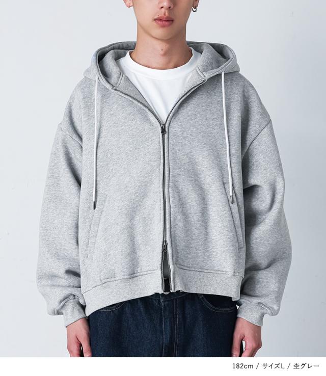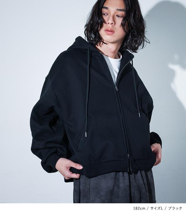 <冬新作>『MDR裏起毛タックスリーブジップパーカー』【メール便不可】【40】[パーカー 裏起毛 メンズ トップス 長袖 ショート丈 ジップパーカー セットアップ対応 スウェット スエット 羽織 コットン混 あったか 秋 冬]