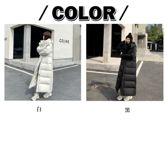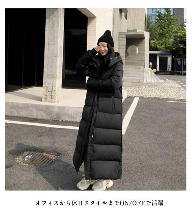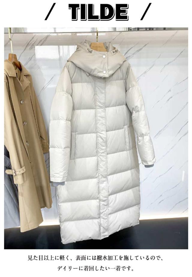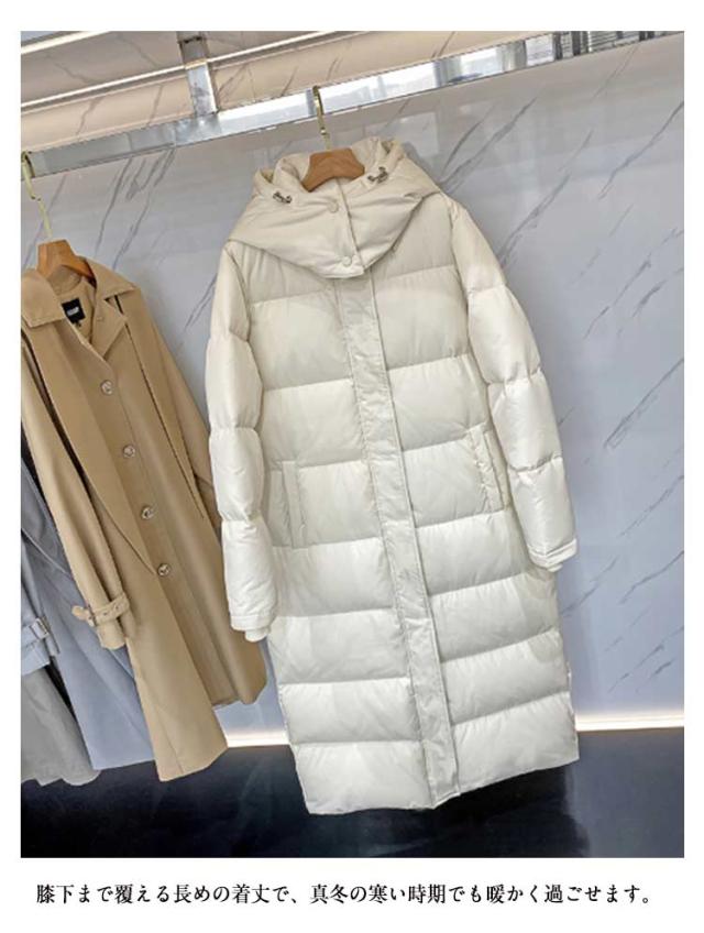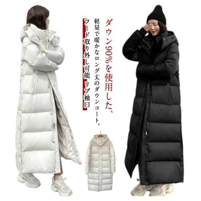 レディース ベンチコート ロング丈 ダウン90% 冬 ロングダウンコート ダウン フード付き ダウンコート コート ダウンジャケット 体型カバー おしゃれ アウター ゆったり ロングコート 軽量 膝下丈 防風 防寒 撥水 保温 ダウン90% 黒 白 シンプル