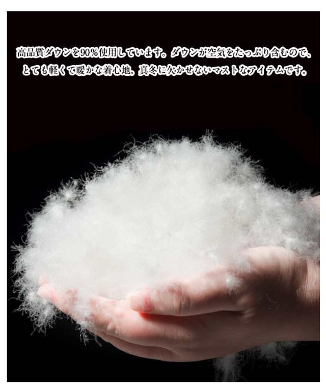 | 素材 | 中綿: ダウン90%、フェザー10% 表地: ポリエステル裏地: ポリエステル |