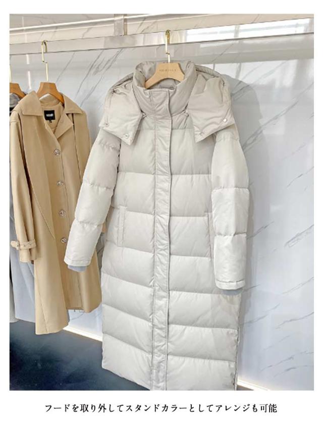 | ダウン90%を使用した、軽量で暖かなロング丈のダウンコート。【フード取り外し可能】【リブ袖口】 高品質ダウンを90%使用しています。ダウンが空気をたっぷり含むので、とても軽くて暖かな着心地。真冬に欠かせないマストなアイテムです。 見た目以上に軽く、表面には撥水加工を施しているので、デイリーに着回したい一着です。 フードを取り外してスタンドカラーとしてアレンジも可能 袖口裏にはリブをつけており、袖口の防寒性も◎。 膝下まで覆える長めの着丈で、真冬の寒い時期でも暖かく過ごせます。 冬場のスポーツ観戦など、ベンチコートとしても使えるダウンコートです。 オフィスから休日スタイルまでON/OFFで活躍 | |