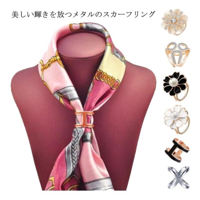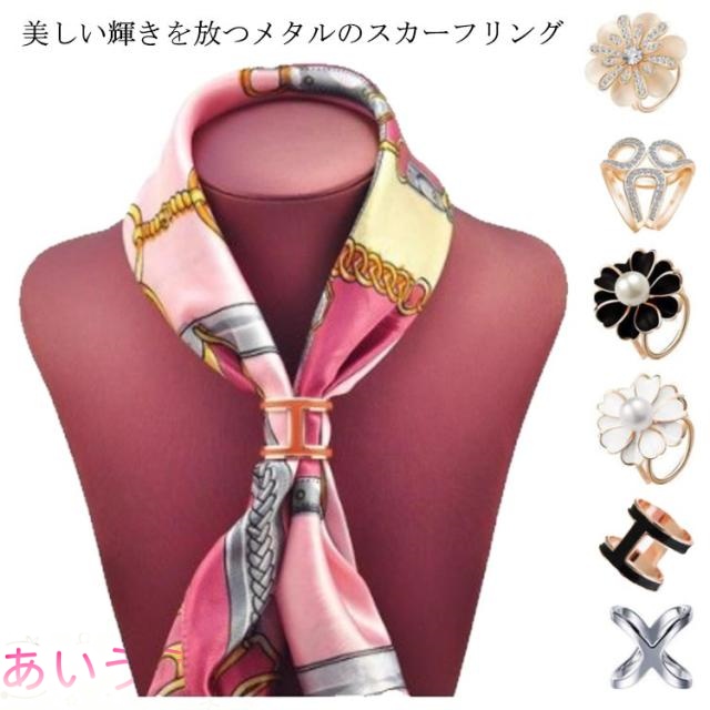 スカーフリング スカーフクリップ スカーフ ストール リング スカーフ留め メタル リング クロスオーバー ハート 花 モチーフ リプルリング パーティー アクセサリー きらきら 軽量 簡単 アレンジ おしゃれ 誕生日 女性 結婚式 入学式 卒業式 母の日 プレゼント 送料無料