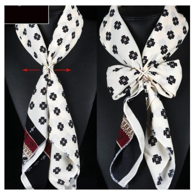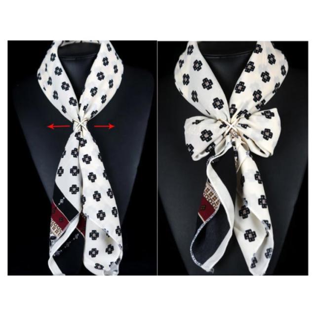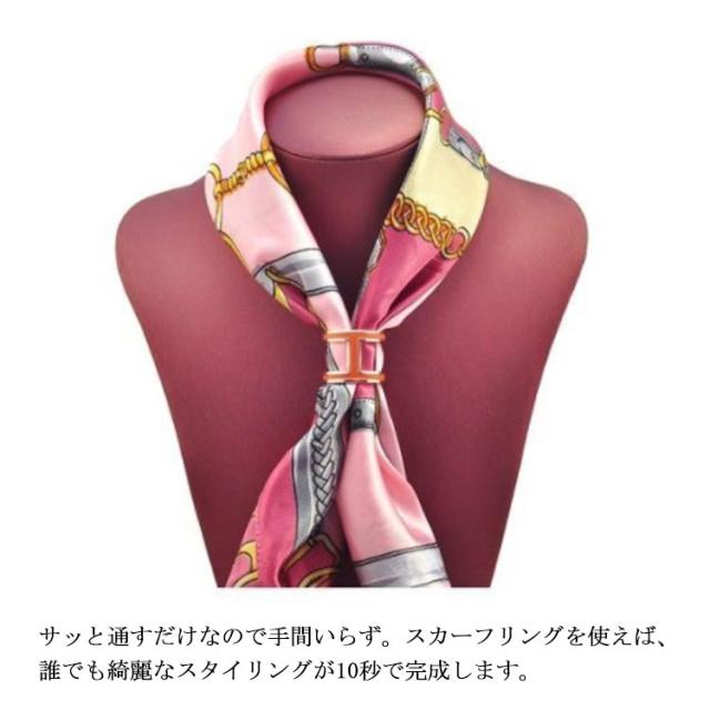 | 美しい輝きを放つメタルのスカーフリング サッと通すだけなので手間いらず。スカーフリングを使えば、誰でも綺麗なスタイリングが10秒で完成します。 動いて形が崩れても簡単にすぐ直せるところも嬉しい。 上質なスカーフと合わせて、お気に入りの組み合わせを見つけてください。 | |