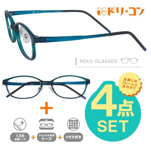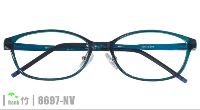 竹ネコメガネ【8697-NV】は、透け感のあるシアンカラーが肌になじみ、上品で優しい印象を与えるフレーム。軽やかな掛け心地で、さりげなく華やかさを添える、大人可愛いデザインです。素材の特性上、顔幅の調整はできませんが、フィット感を重視したデザインが魅力です。