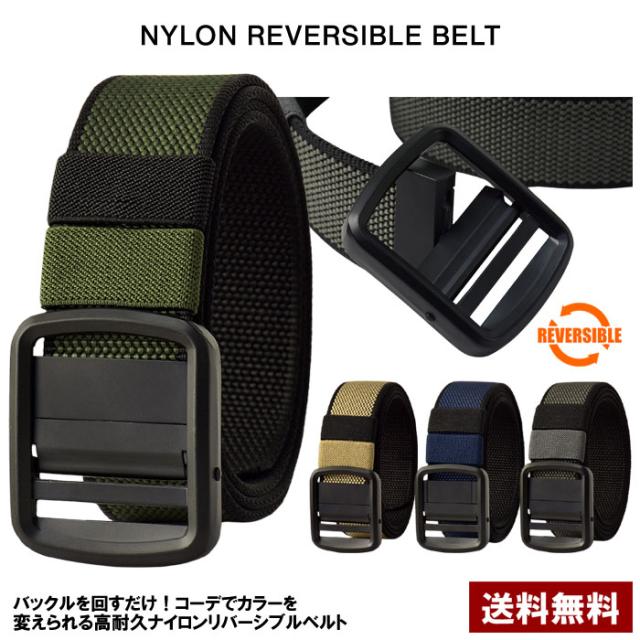 送料無料中☆バックルを回すだけ!コーデでカラーを変えられる高耐久ナイロンリバーシブルベルト