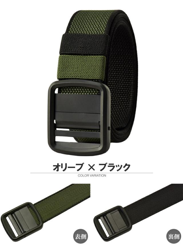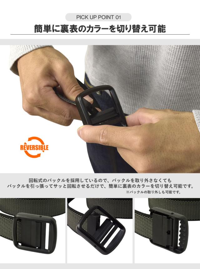 ベルト メンズ 穴なし リバーシブル 紳士 男性 ナイロン 無段階 調整 ミリタリー バックル 回転 カット調整可能 配色 使い分け Wフェイス 幅広 カジュアル スポーツ ゴルフ 作業着 丈夫 頑丈 高耐久 タクティカルベルト【Z2E】【パケ2】