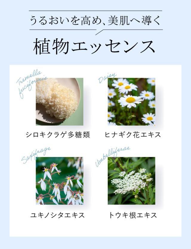 洗顔後すぐに肌になじませるだけで、角質層まで浸透し、肌の生まれ変わりのリズムを整えて、毛穴や角質の目立たない透明感のある素肌に。