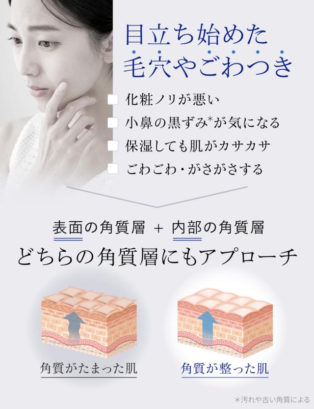 エイジングケアを考えるなら、ピーリングやゴマージュのような今までの角質ケアから卒業し、新しい角質ケアへ。