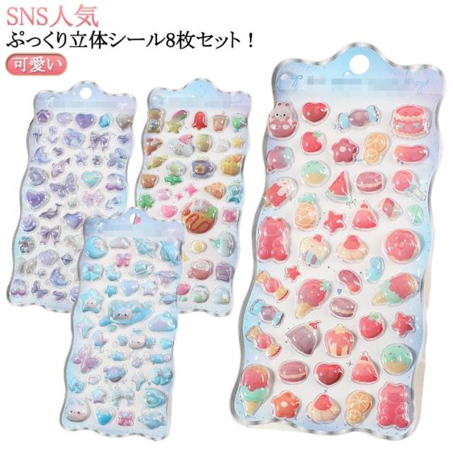 まとめ買い 8枚セット シール シール ぷっくり シール かわいい 3D 動物 おしり 女の子 デコ セット シール アニマル かわいい ドロップ 交換 シール帳 ボンボン スイーツ SNS人気 スマホケース 立体シール 女子 コレクション 子ども