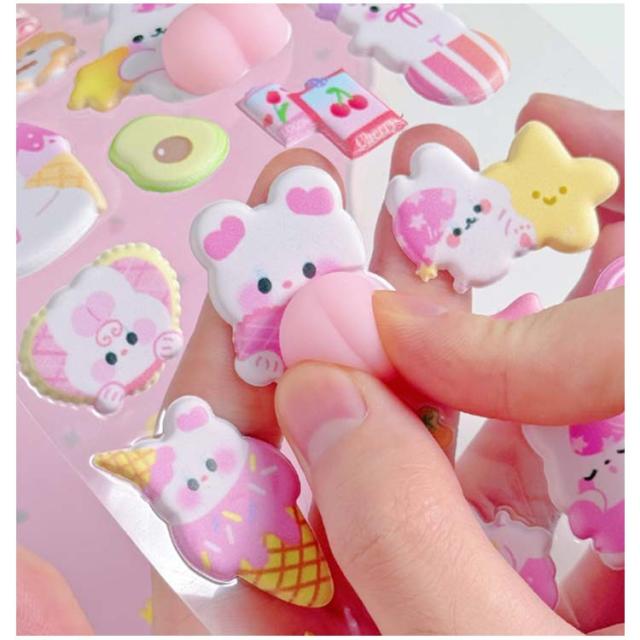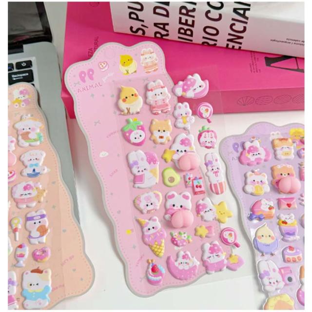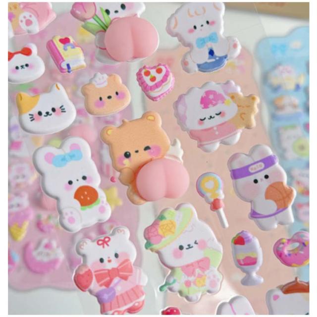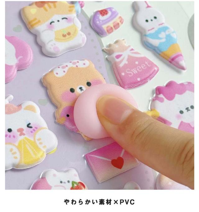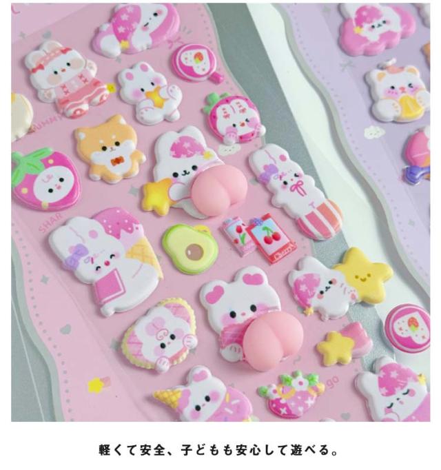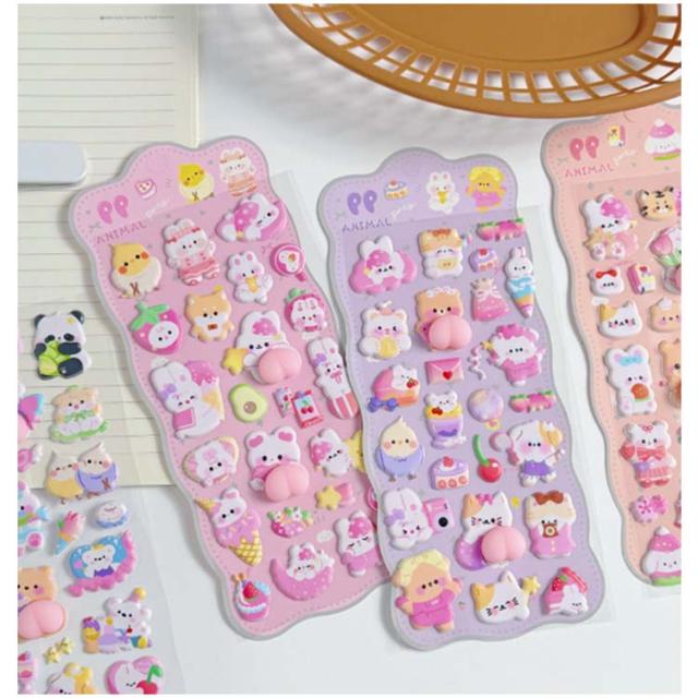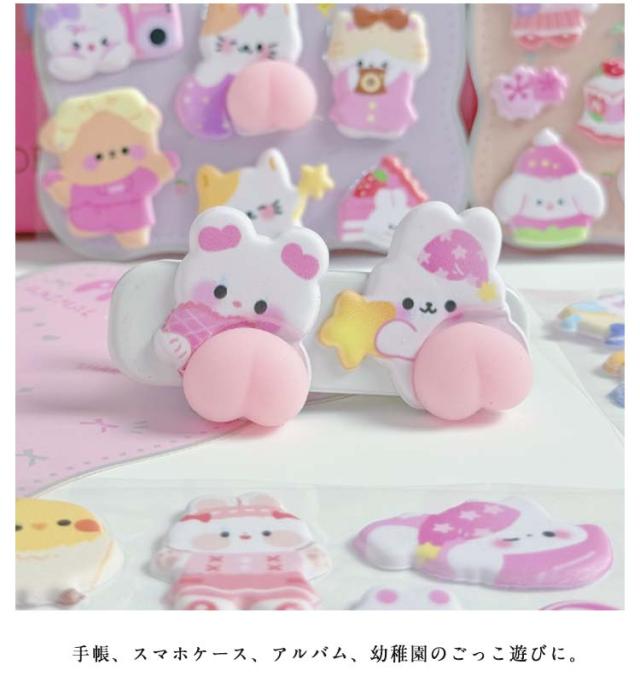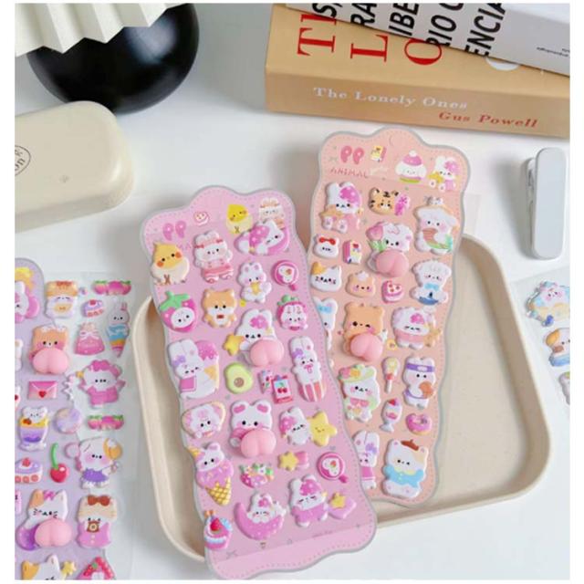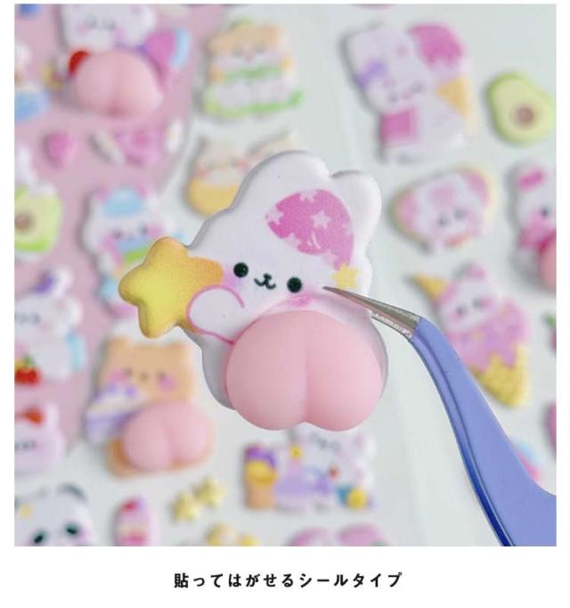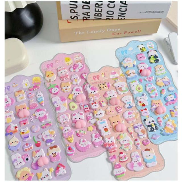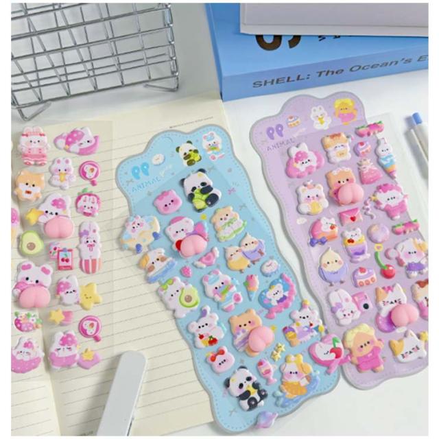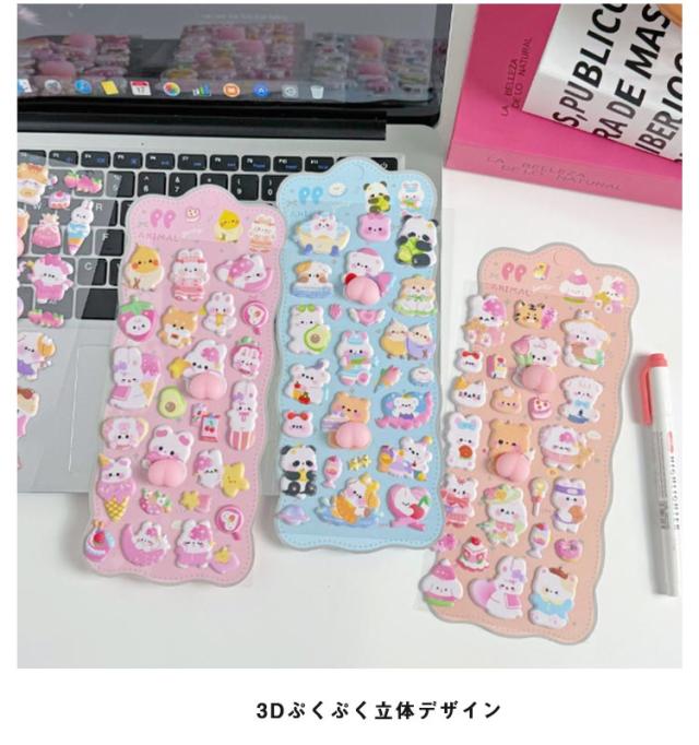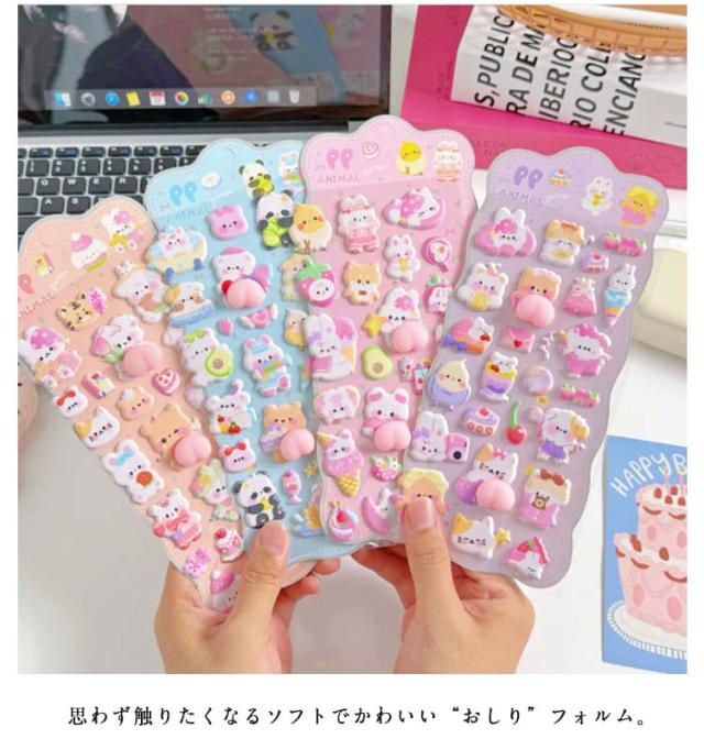 2枚セット 立体 シール ぷにぷに 動物 お尻シール おしり 可愛い お尻 ぷくぷくシール 3D ぷっくり シール ドロップシール スマホケース 手帳 DIY デコシール ご褒美シール 女の子