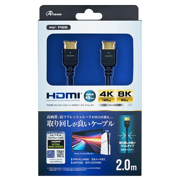 アンサー【ゲーム周辺機器】PS5用 ウルトラハイスピード HDMIケーブル スリム 2m ANS-PSV039BK GA4573201421159【PS5/PS4/Switch対応】