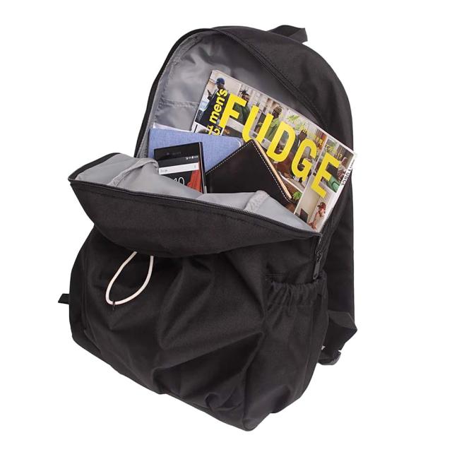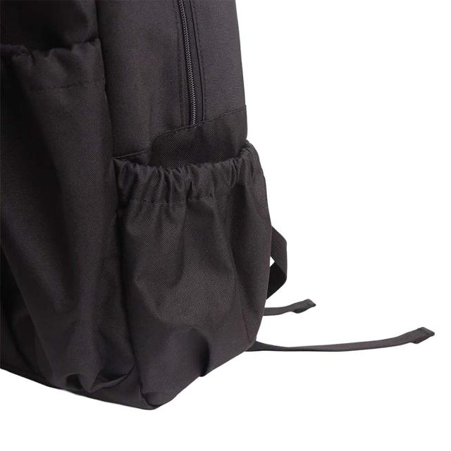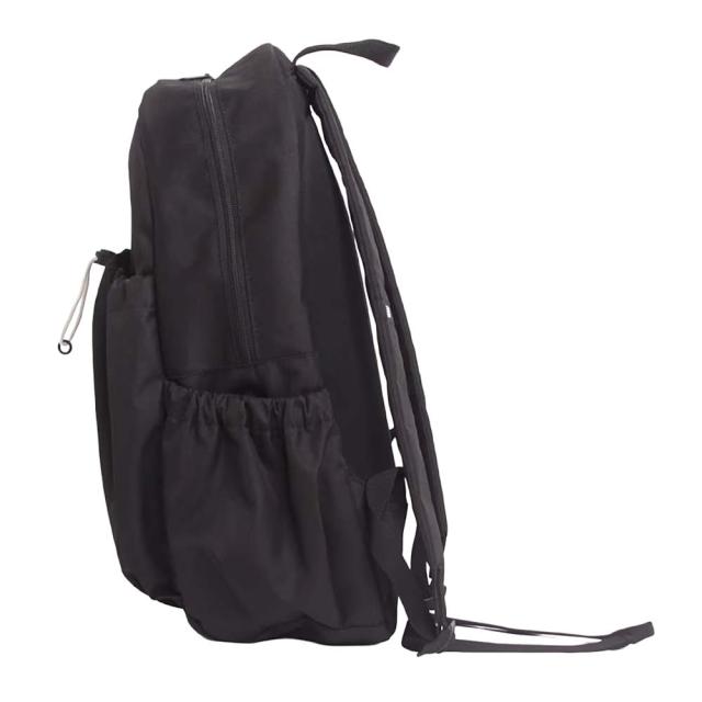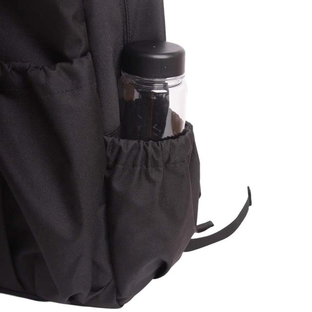 コンパクトながらA4サイズも収納できる実用的なサイズ感です。メイン収納部は開口部が大きく開き、ノートや雑誌、タブレットなどもスムーズに出し入れ可能。フロントポケットはしぼりタイプでデザイン性が高く、収納力も◎。サイドポケットにはドリンクボトルを収納でき、デイリー使いにぴったりです。落ち着いたカラーとミニマルなロゴが合わせやすく、通学・通勤・お出かけなど幅広いシーンで活躍します。