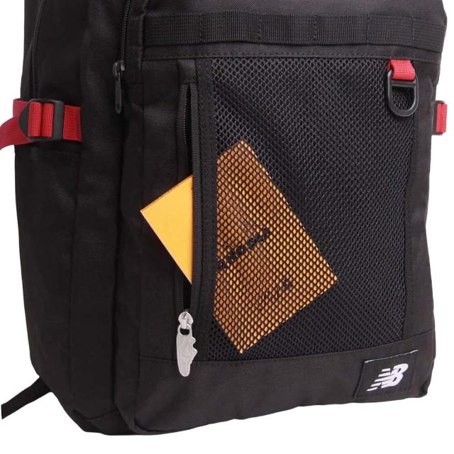通勤・通学からアウトドア、旅行まで幅広く活躍します。メインルームには13インチPCを収納できるクッションポケット付きで、荷物を整理しやすい設計。フロントにはメッシュポケットや小物用ポケットを多数配置し、すぐ取り出したいアイテムの収納にも便利です。サイドにはドリンクボトルを収納可能なポケット付き。ショルダーベルトには一部リフレクター素材を使用し、夜間の使用にも安心。撥水素材を採用し、軽量でタフに使えるNew Balanceの機能派バックパックです。