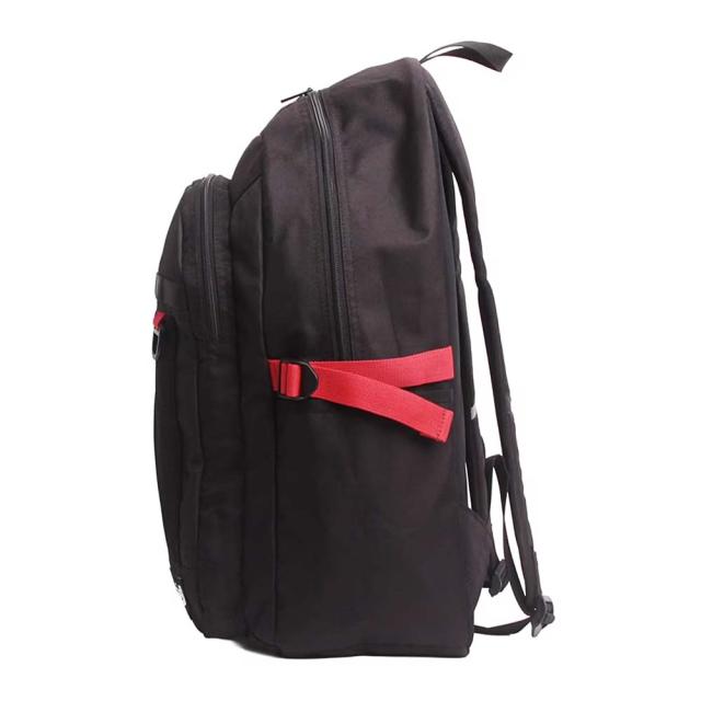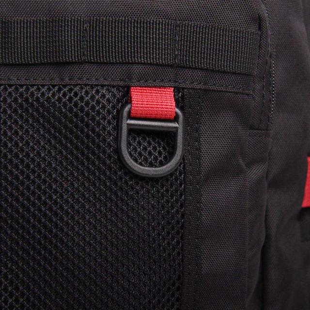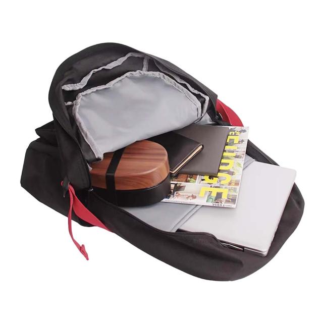 前面収納部の豊富なポケットで荷物の小分けに便利。大容量のメインルームには13インチのPCが収納可能なクッションポケット付き。一部リフレクター素材のショルダーベルトで夜間の利用も安心。サイドポケットにはドリンクボトルも収納可能。