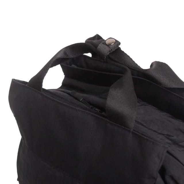 メイン収納部はA4クリアファイルもすっきり収まるサイズ感で、13インチまでのノートPCや書類の持ち運びにも便利です。内装にはオープンポケットを5つ備え、小物の整理がしやすい設計。外側にはファスナーポケットやサイドポケットを配置し、ボトルやスマホなどの収納も快適。トートとリュックの2WAY仕様で、シーンに合わせた持ち方が可能です。シンプルなデザインながらも、日常使いに必要な収納力と実用性を兼ね備えた万能バッグです。