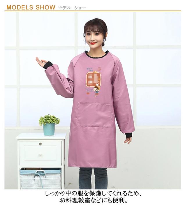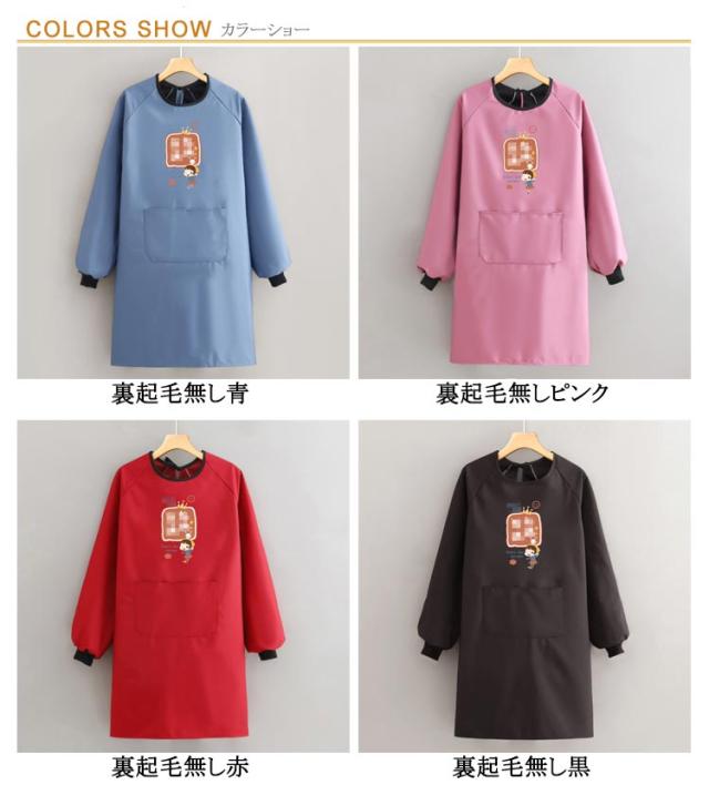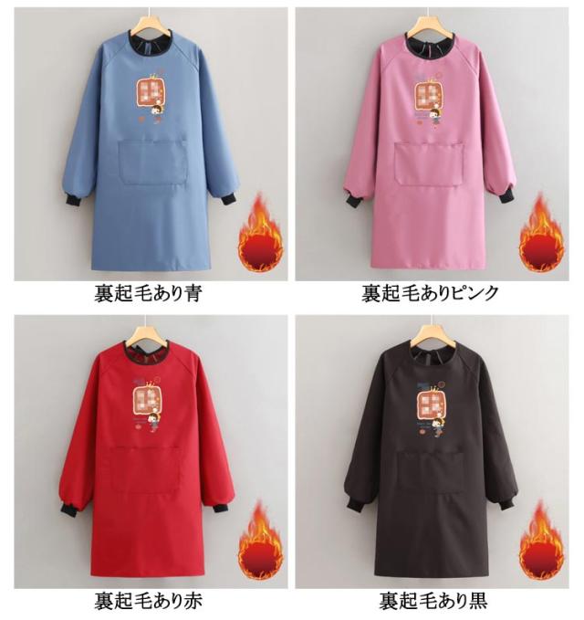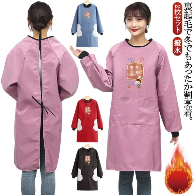 2枚セット レディース 家事用 暖かい割烹着 ロング丈 裏起毛 秋冬 防寒 撥水 スモック 長袖 冬用 ロング丈 おしゃれ 袖口リブ チュニック 保育士 エプロン かっぽうぎ 節電対策 寒さ対策 袖カバー 腕カバー 冬用エプロン