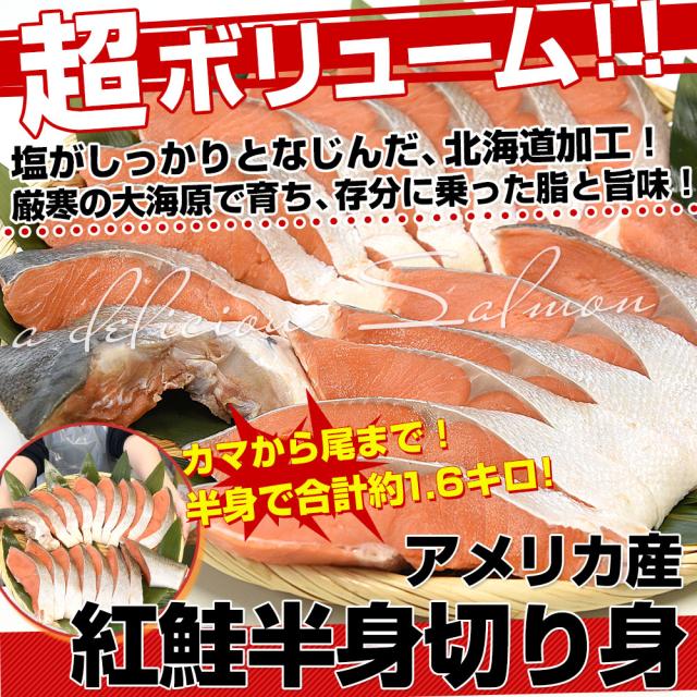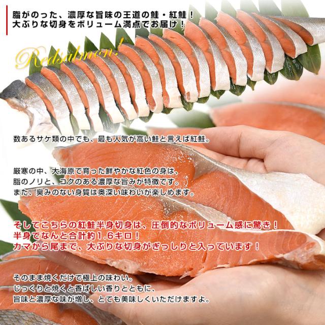 北海道から直送 北海道加工 紅鮭半身切身 約1.6キロ 送料無料 アメリカ産 鮭 サケ 冬ギフト【発送時期:カート内に記載しております】