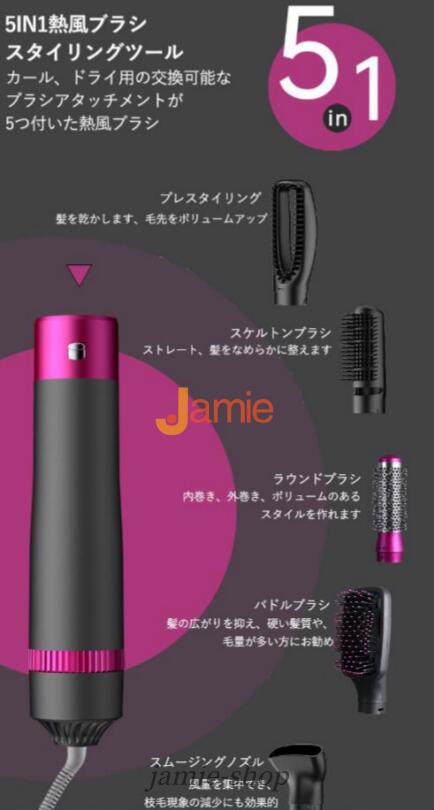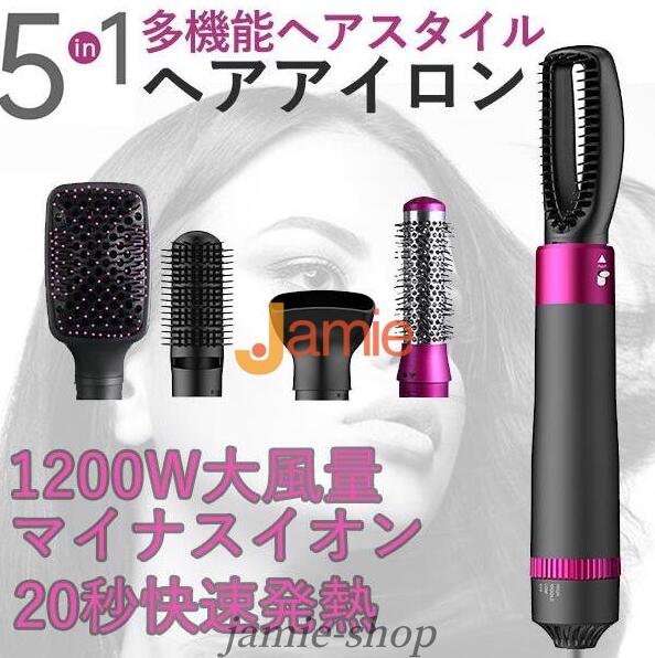 5in1多機能 ヘアアイロン カールドライヤー ストレート くるくるドライヤー ブラシ ロールブラシ アイロン ヘアードライヤー 多機能 ホットエアブラシ 3段階温度調節