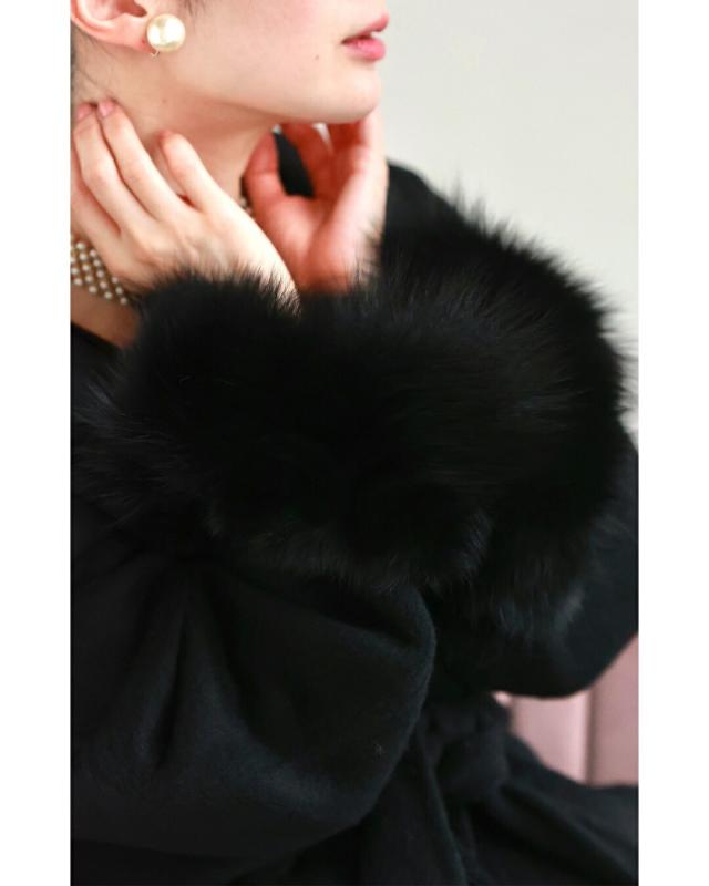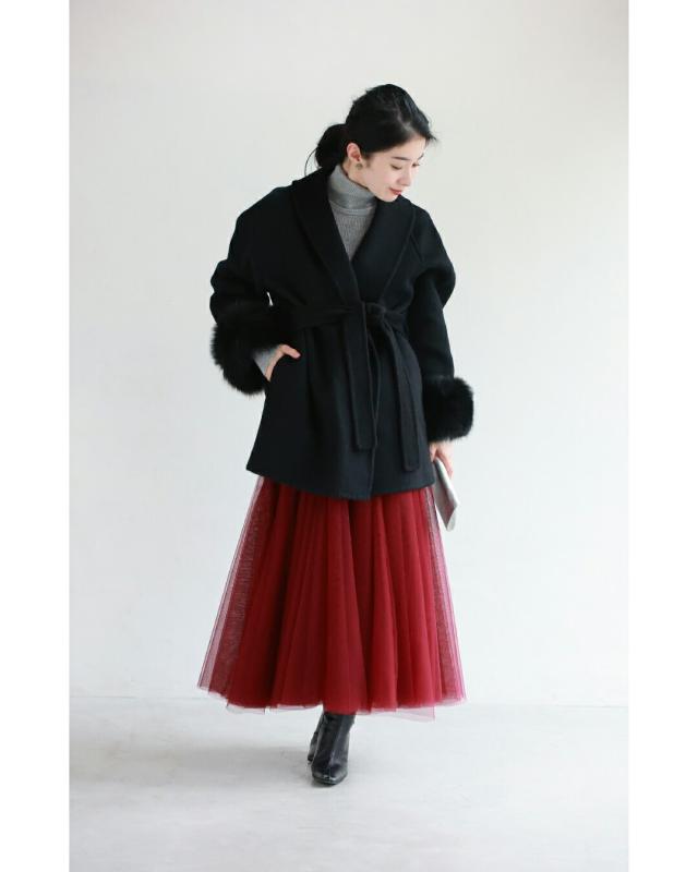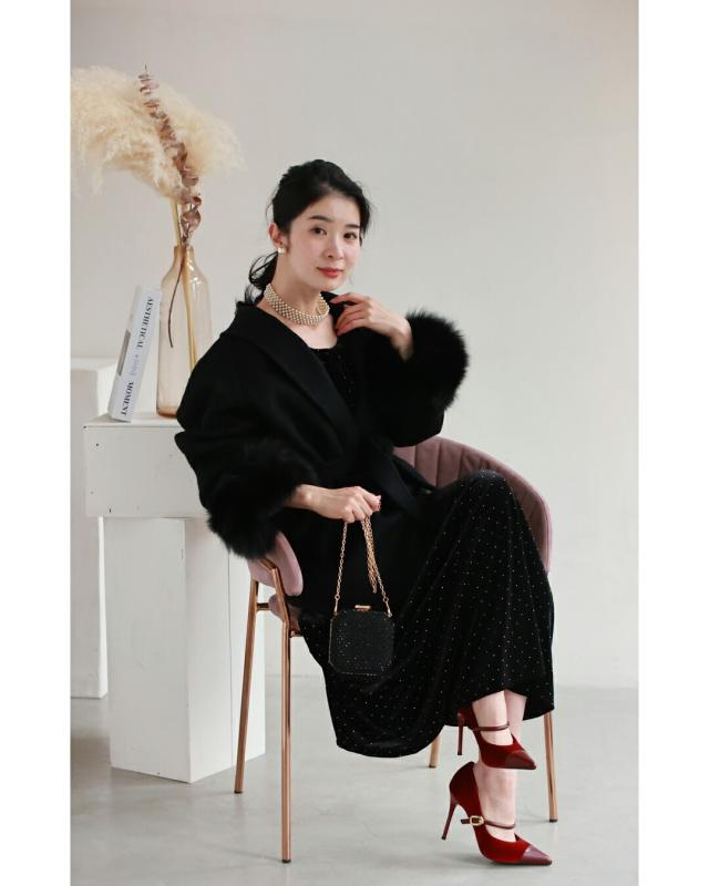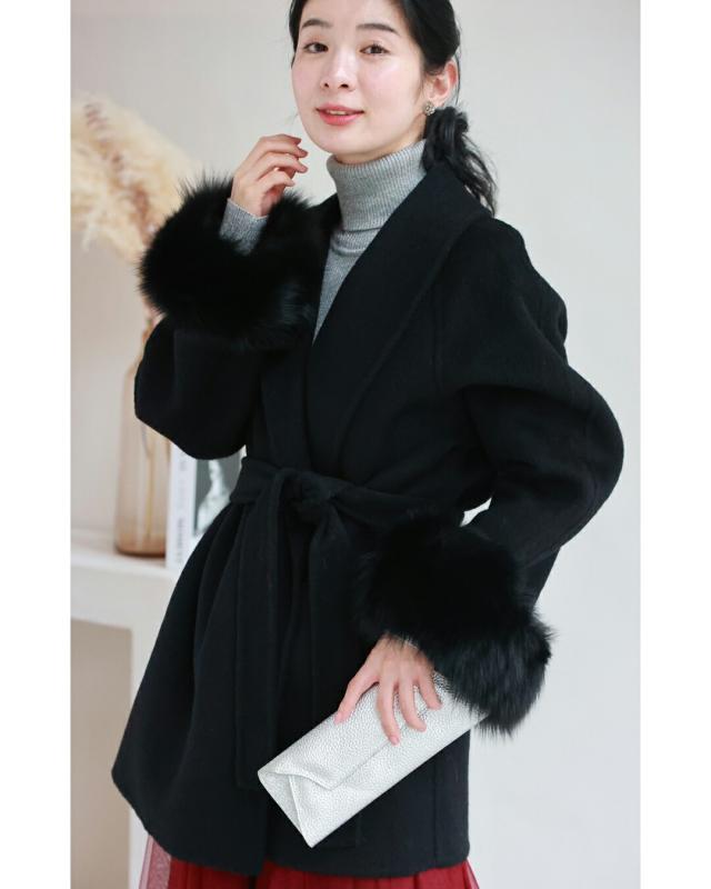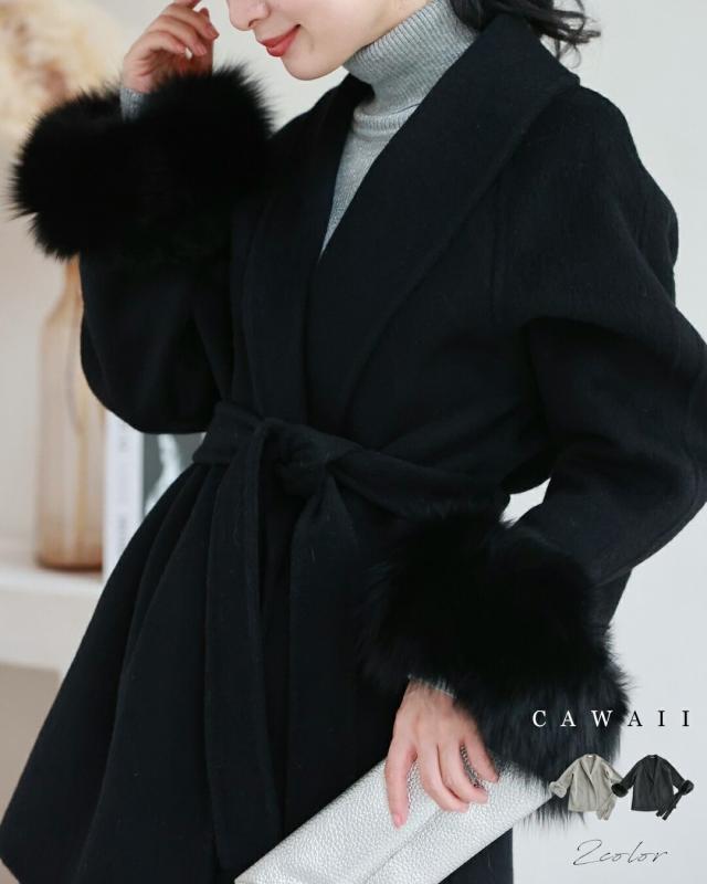新作12月16日 取り外しできるファー袖ウールライクコート(ベルト付き) cawaii w61636ps S~2L対応 羽織り アウター 華やか 高級感 グレー ブラック オシャレ 個性的 大人可愛い エレガント 上品 秋服 冬服 レディース ファッション ミセス 30代 40代 50代