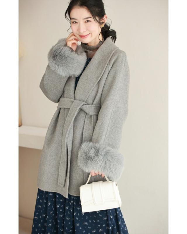 w61636ps 新作 新着 再入荷 CAWAII FRENCHPAVE フレンチパヴェ エレガント ベーシック カジュアル 可愛い かわいい カワイイ おしゃれ オシャレ お洒落 個性 個性的 定番 ベーシック 大人かわいい 大人可愛い 上品 女性らしい デザイン スタンダード ナチュラル きれいめ キレイめ シンプル フェミニン レディース レディースファッション 大人 ママ ミセス 30代 40代 50代 60代 取り外しできる ファー袖 ウールライク コート ベルト付き 羽織り アウター 華やか ウエストマーク S M L XL 2L ワンサイズ フリー 小さめ 小さい 低身長 痩せ ほっそり 小柄 細身 標準サイズ 大きめシルエット 大きい ビッグシルエット ゆったり F サイズ自由 厚手 あったかい あたたかい 暖かい ぬくい 春 秋 冬 秋服 秋物 冬服 冬物 グレー 灰色 ブラック 黒色 普段着 日常使い ヘビロテ 毎日着れる デイリー使い 仕事 会社 通勤 おでかけ 旅行 高級感 防寒対策 大人女子 パーティー