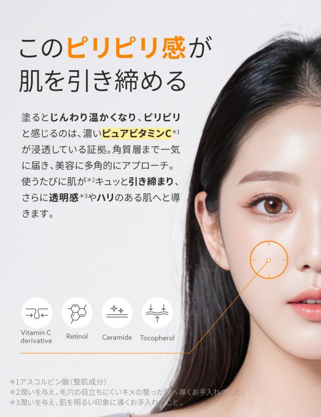 塗るとじんわり温かくなり、ピリピリと感じるのは、濃いピュアビタミC※1が浸透している証拠。