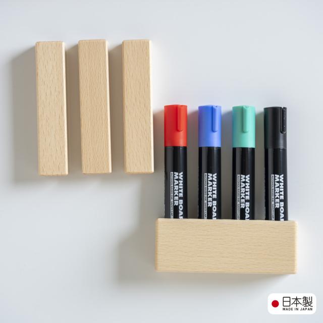 日本製 木製「ペンスタンド【4穴】+ 無地マグネットバー3本」 冷蔵庫 マグネット バー インテリア リビング キッチン 玄関 天然木 メモホルダー 磁石 石崎家具