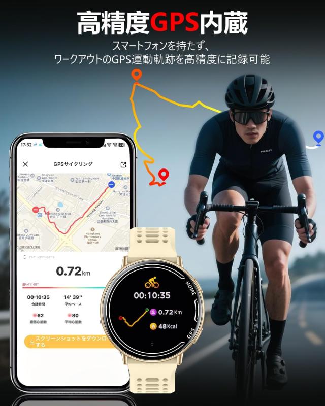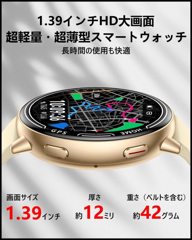 【革新モデルGPS内蔵スマートウォッチ&超薄型超軽量設計&1.39インチ大画面】