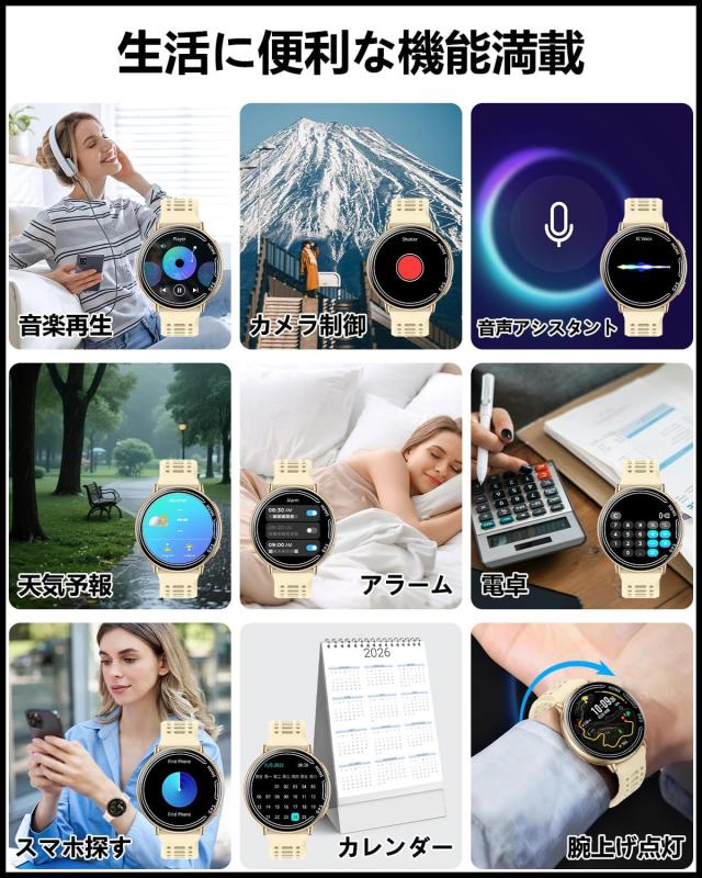 このおしゃれなスマートウォッチは、スタイルに合わせて使える多種類の個性的な文字盤を取り揃え、ご自身が撮影した家族やペット、思い出やの景色写真を自分だけのオリジナル文字盤も作成可能です。