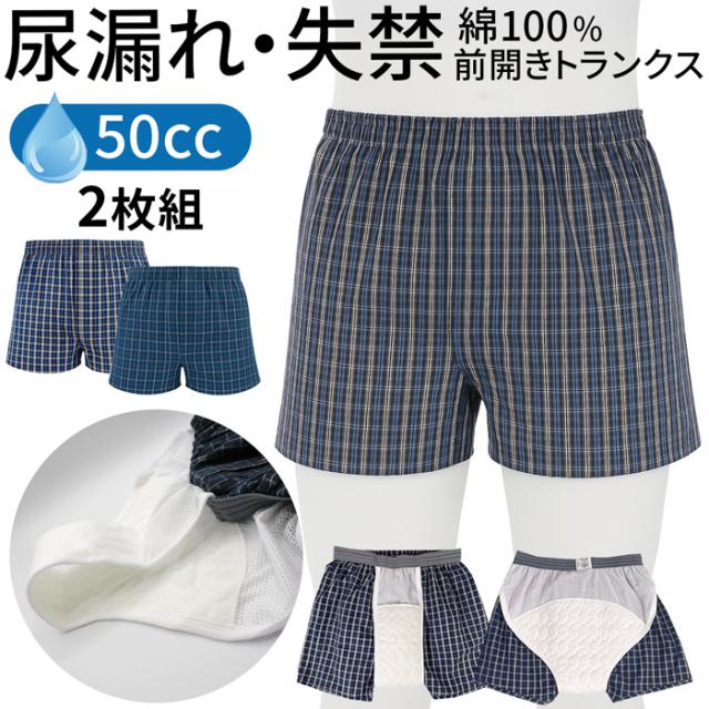 2枚組 失禁パンツ トランクス メンズ 綿100% 大型防水パッド 薄手 吸水 尿漏れ 軽失禁 通気性 ちょい漏れ 頻尿 介護 おねしょ 下着 前開き 洗い替え ms-019 プレゼント ギフト 母の日 父の日 敬老の日 バレンタイン ホワイトデー クリスマス