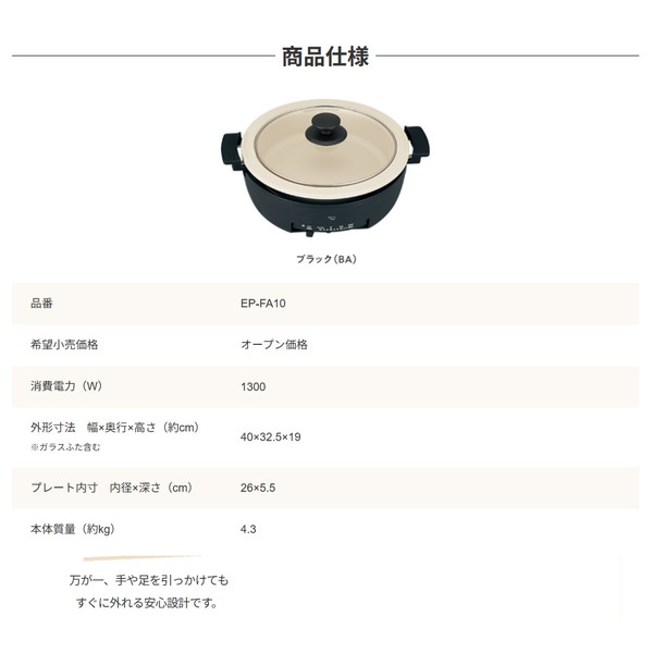 象印 グリルなべ 3.3L プレート1枚 あじまる EP-FA10-BA 電気鍋 土鍋 すき焼き