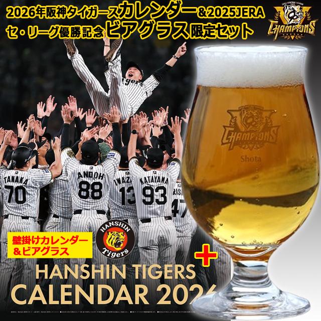 2026年阪神タイガースカレンダー&2025JERAセ・リーグ優勝記念ビアグラス限定セット 壁掛け ライセンス認可商品 ギフト仕様 310ml ビールグラス スケジュール