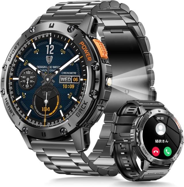 スマートウォッチ スポーツウォッチ 1.43インチ 大画面 懐中電灯 2種ベルト付き 耐衝撃 Bluetooth5.3通話 iPhone アンドロイド対応 腕時計 IP68防水