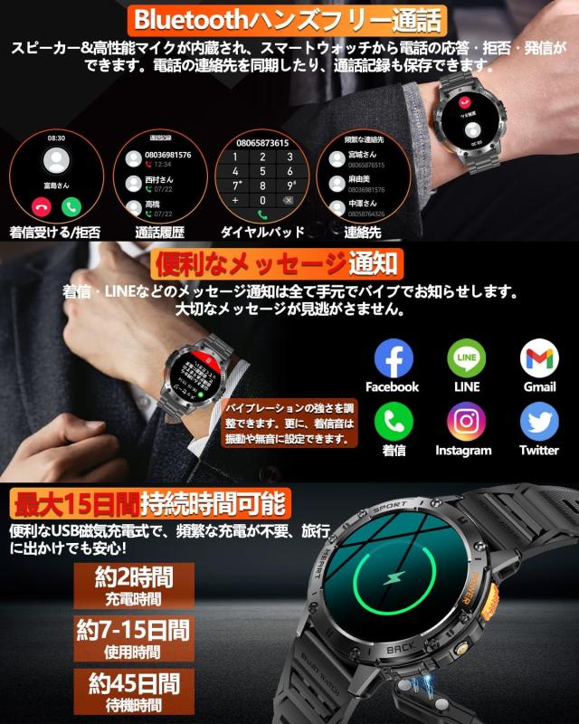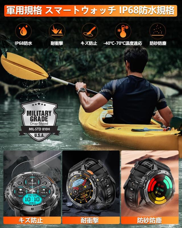 このスマートウォッチは特殊な複合材料を採用され、耐低温、耐高温、耐衝撃、防水防塵など、多くの軍用標準テストに合格することができます。