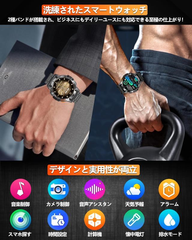【Bluetooth5.3通話機能&上質なステンレス製スマートウォッチ&2種類バンド付き】