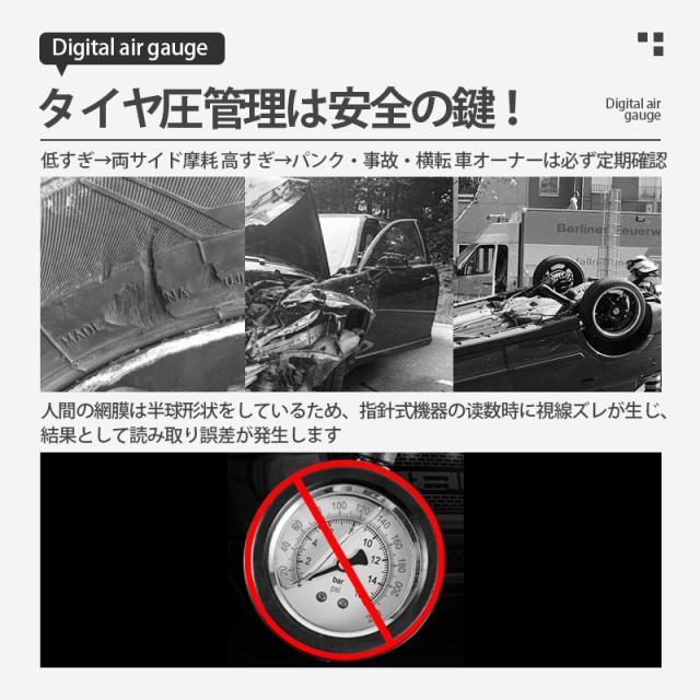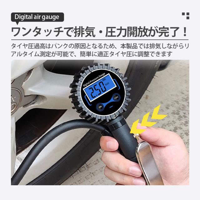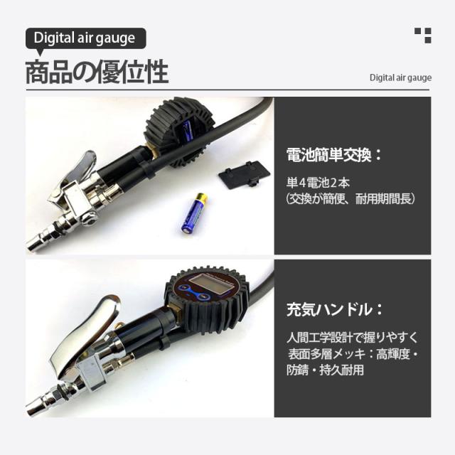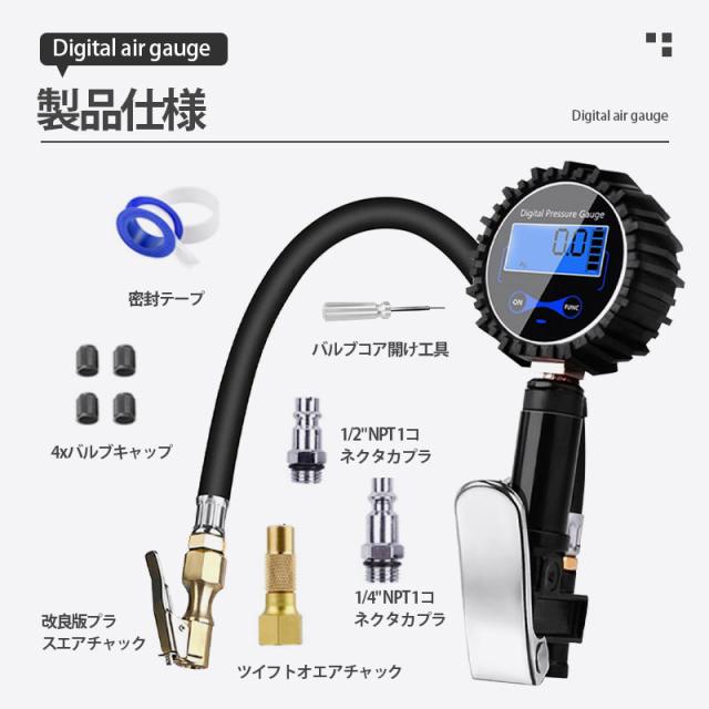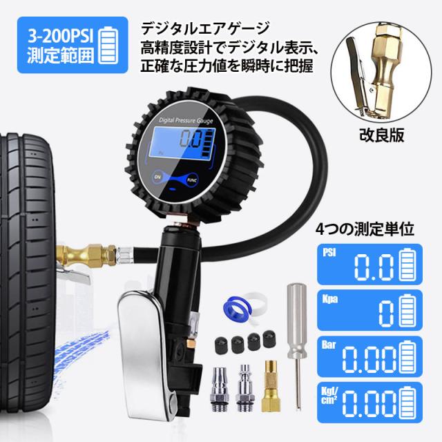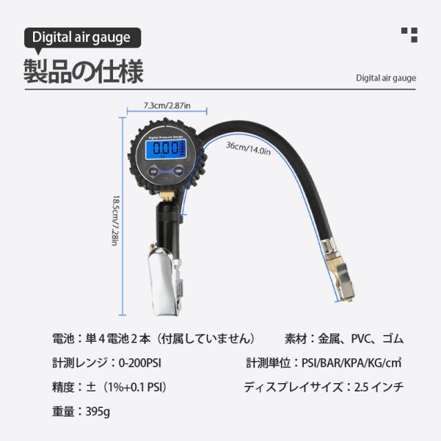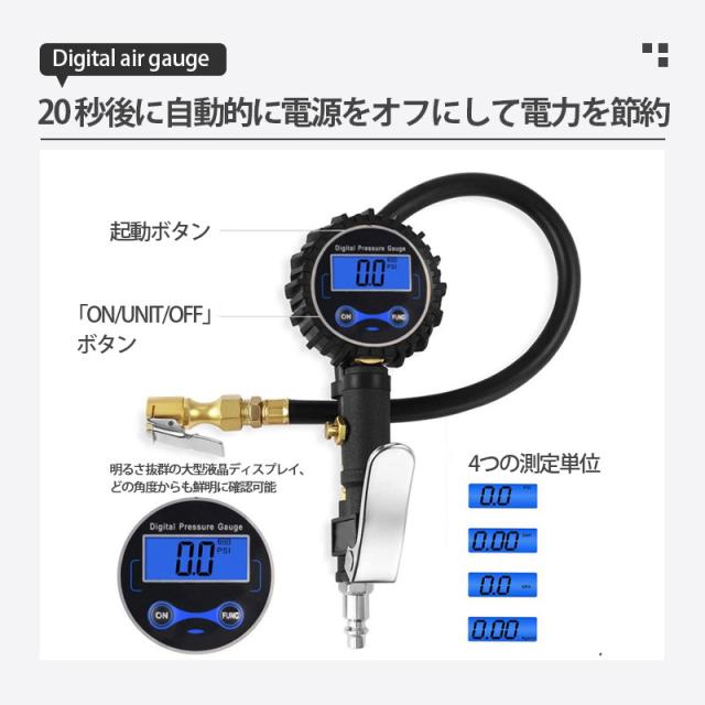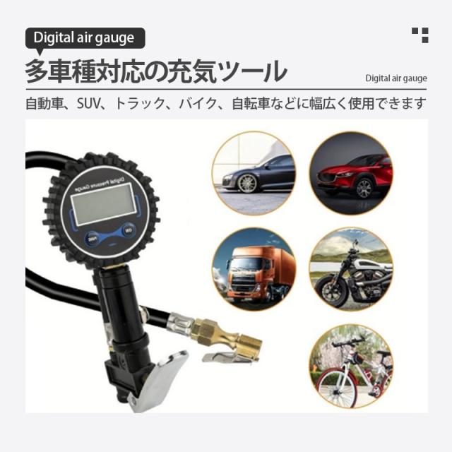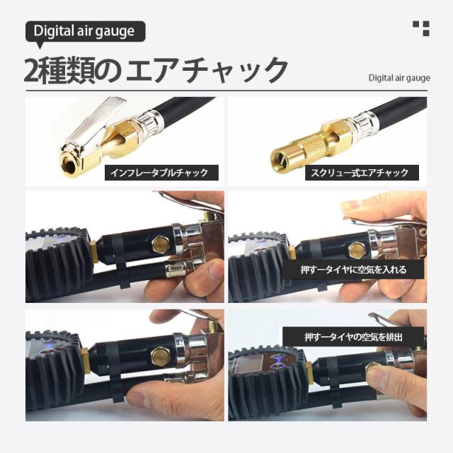 エアチャックガン エアゲージ タイヤゲージ エアチャック デジタル 200PSI/1424KPA 空気圧ゲージ 自動車 空気入れ