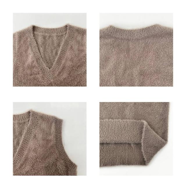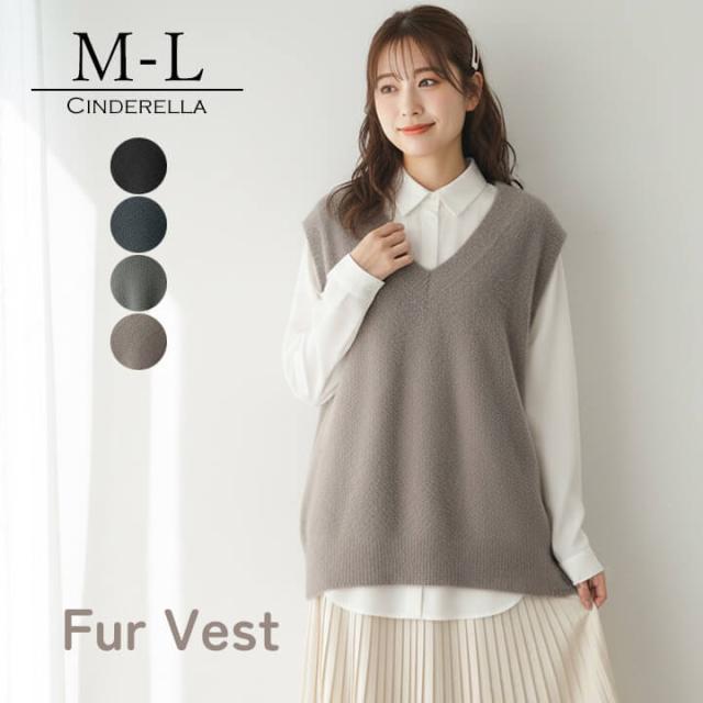ふんわり柔らかな質感が魅力、オシャレの幅が広がるVネックのファーベスト。
