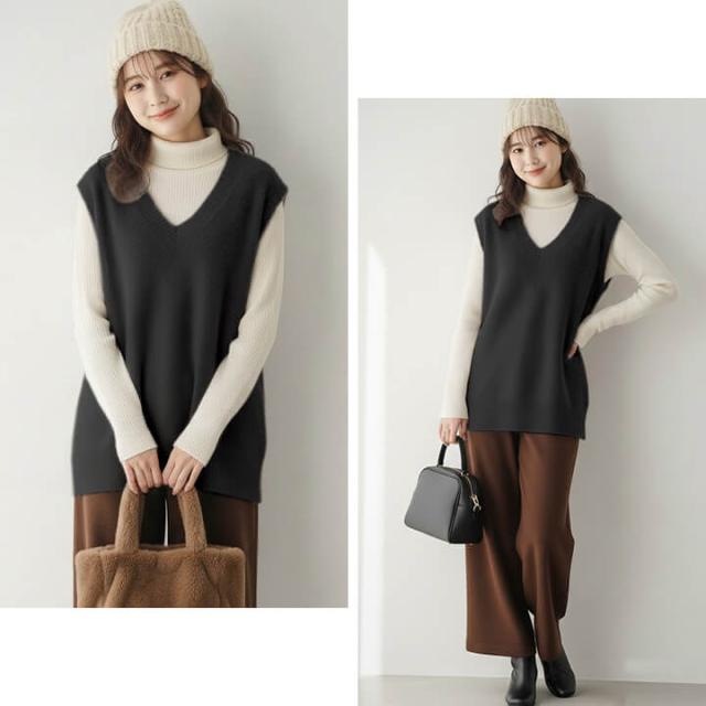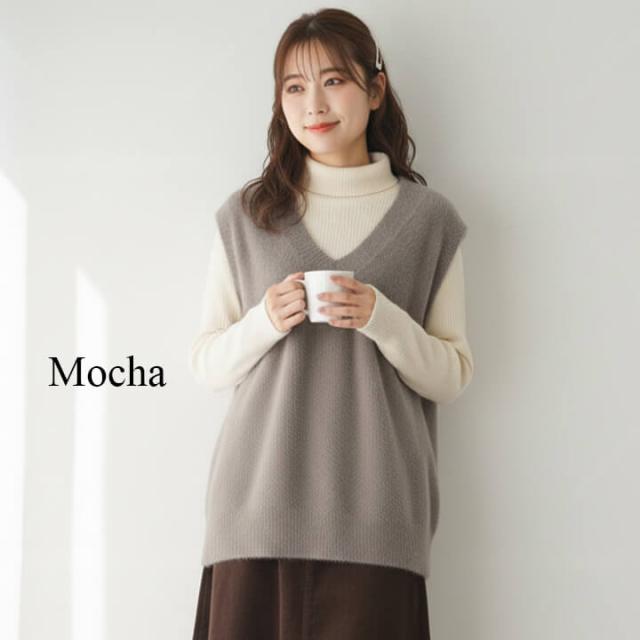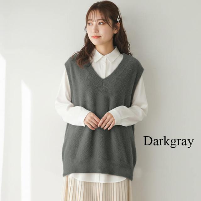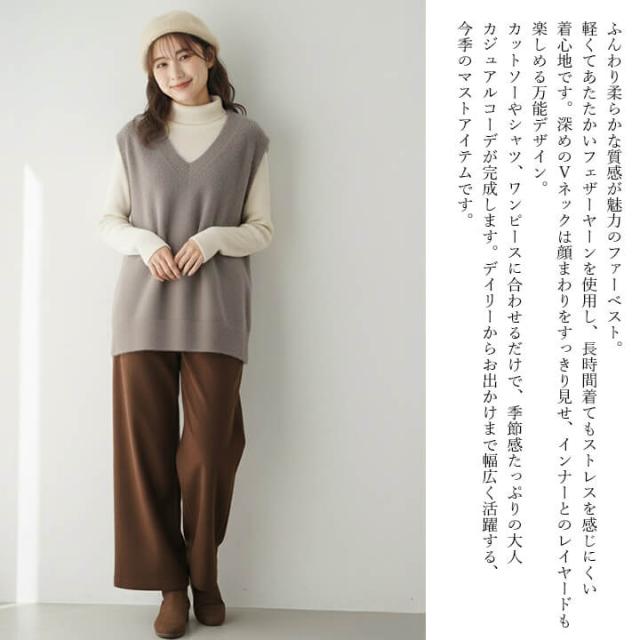 ファーベスト Vネック 秋冬 カジュアル レディース ベスト 女性 ふわふわ 可愛い フェザーヤーン 毛足 長め 着回し ゆったり ストレスフリー 春 秋 冬 快適 デイリー コーデ 大人 シンプル ラフ あったかい 抜け感 こなれ感 季節感 トレンド感 ノー
